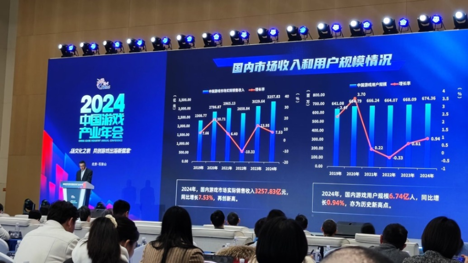 據報告披露,2024年,國內游戲市場實際銷售收入3257.83億元,同比增長7.53%,再創(chuàng)新高;國內游戲用戶6.74億人,同比增長0.94%,亦為歷史新高點。