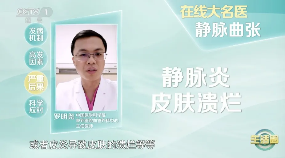 若沒有及時治療,任由下肢靜脈曲張進一步發(fā)展,可能會出現(xiàn)色素沉著、皮膚潰爛,或者形成血栓,堵塞血管,導致靜脈炎,甚至可能會導致肺栓塞。