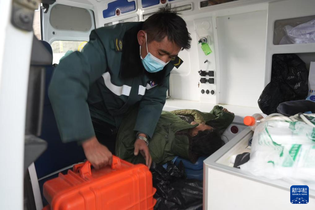 1月7日,在定日縣長所鄉(xiāng)古榮村,工作人員在救護車里工作。