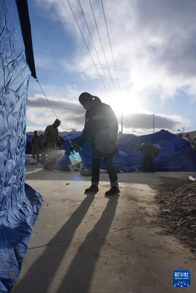1月7日,在定日縣長所鄉(xiāng)古榮村,工作人員進行消殺作業(yè)。