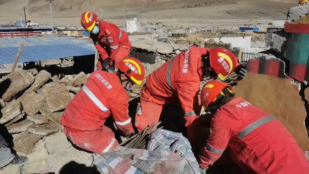 2025年1月10日,西藏日喀則,根據(jù)前指的統(tǒng)一部署安排,中國安能派出技術(shù)專家組共5組,積極對接長所鄉(xiāng)10個村和一處寺廟的臨時安置點(diǎn)板房搭建工作。視覺中國 圖