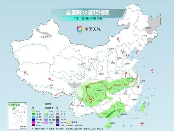 今起三天,雨雪天氣將發(fā)展增多,明天長江沿線和廣東等地也將出現降雨,但量級不大,且時間短暫,難以緩解近期因降水稀少而導致的旱情,江南、華南等地部分地區(qū)仍有氣象干旱,當地需注意防范。