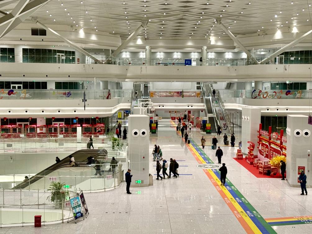 1月15日,北京朝陽站內(nèi),春運客流井然有序,鐵路乘客便捷換乘地鐵。新華社記者 張驍 攝