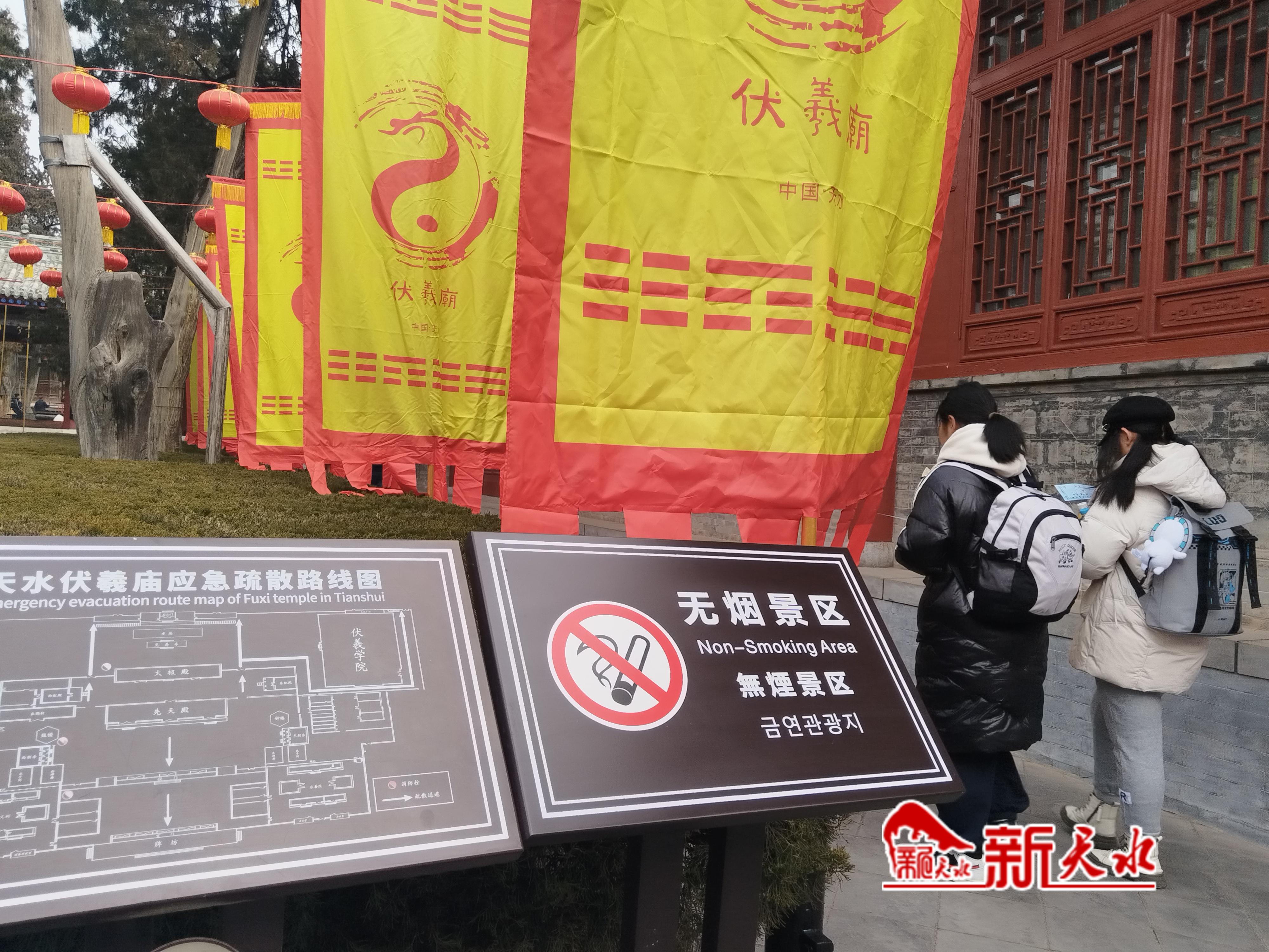 走進(jìn)伏羲廟景區(qū)、天水市博物館,也可以看到“文明游玩,做謙恭有禮的旅游人”等文明旅游宣傳標(biāo)識(shí)。為了避免大聲喧嘩干擾游客參觀,許多游客輕聲低語地與同伴們交流著。