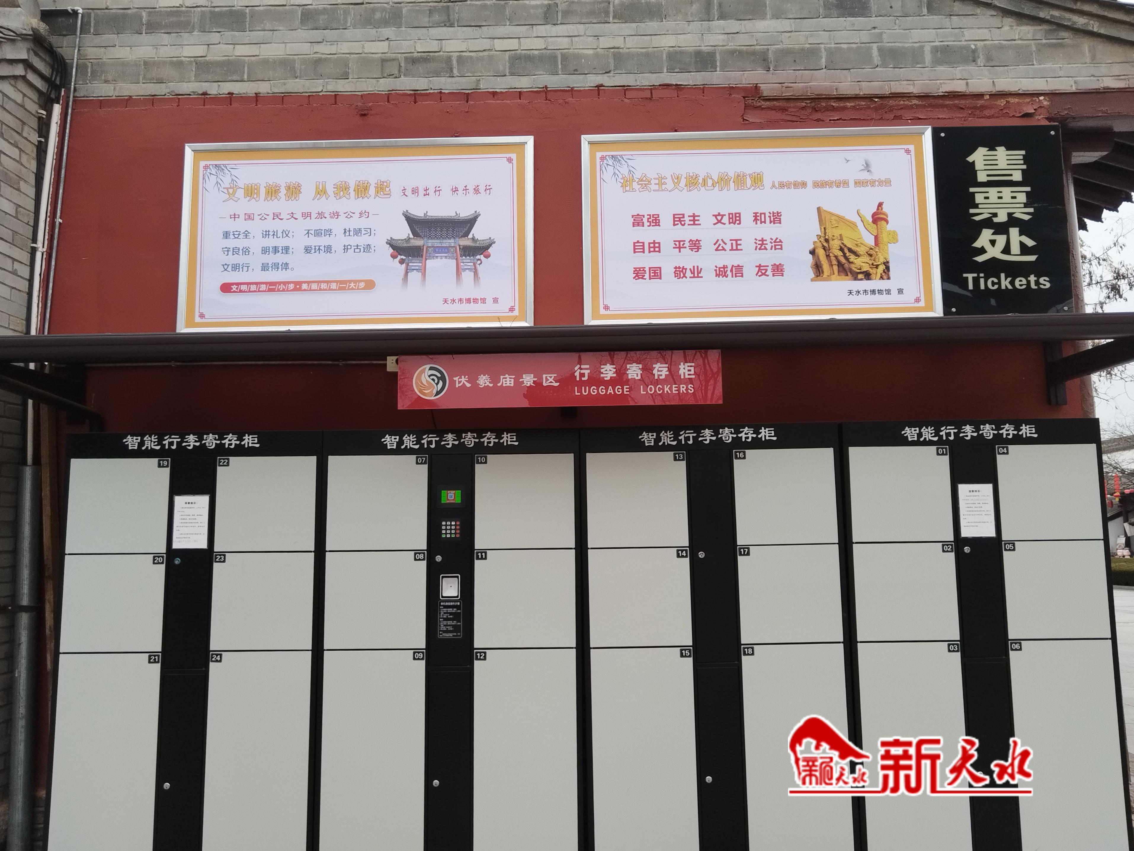 春節(jié)期間,記者在伏羲廟景區(qū)售票處看到,張貼在外墻上的“文明旅游從我做起”“中國公民文明旅游公約”以及游客服務(wù)中心內(nèi)設(shè)置的有關(guān)文明旅游的宣傳標(biāo)語格外醒目。在游客服務(wù)中心門外的LED屏上,滾動(dòng)播放著文明旅游宣傳片。為方便游客寄存行李,游客服務(wù)中心室內(nèi)外還新增設(shè)了免費(fèi)智能行李寄存柜,一共有7組42個(gè)寄存單元,得到了游客的好評(píng)。
