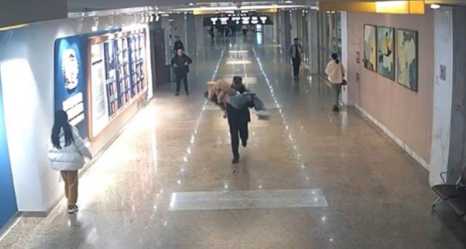 3月14日清晨7時(shí)55分,浙江大學(xué)附屬邵逸夫醫(yī)院錢塘院區(qū)的門診大廳發(fā)生驚險(xiǎn)一幕。一名家屬背著患者匆忙進(jìn)門時(shí),患者突然昏迷從家屬背上滑落,重重摔倒在地,此時(shí)家屬已經(jīng)精疲力竭。正在門口巡邏的保安楊國輝見狀沖了上去,抱起昏迷的患者一路飛奔向搶救室。
