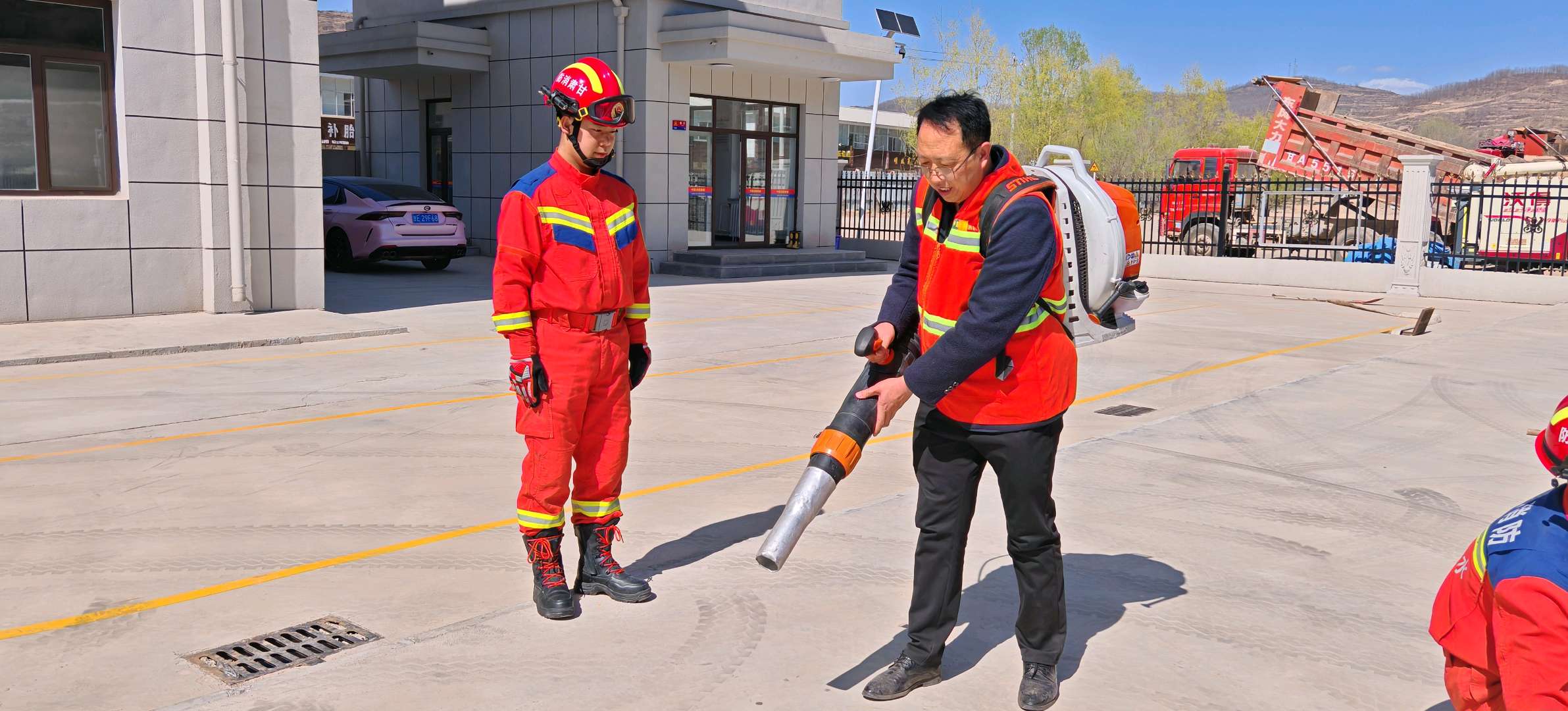 實操訓(xùn)練場上,教官詳細(xì)講解了普通滅火器、風(fēng)力滅火機(jī)、高壓細(xì)水霧滅火機(jī)、背負(fù)式消防水槍、滅火拖把、油鋸等常用滅火主戰(zhàn)裝備以及“以水滅火”常用戰(zhàn)法的操作使用方法,針對森林火災(zāi)中如何快速辨別風(fēng)向滅火帶專業(yè)技術(shù)進(jìn)行實操演示。同時,手把手教授滅火主戰(zhàn)裝備的一般故障排除方法和日常維護(hù)保養(yǎng)重點(diǎn),并組織裝備操作體驗,參訓(xùn)人員積極性高,虛心請教問題,爭先上手體驗各種裝備操作使用,現(xiàn)場氣氛十分活躍。這一系列培訓(xùn)為撲火隊員們筑牢了理論基礎(chǔ),不僅提升了他們的救災(zāi)能力,更大大降低了火災(zāi)救援過程中的風(fēng)險。