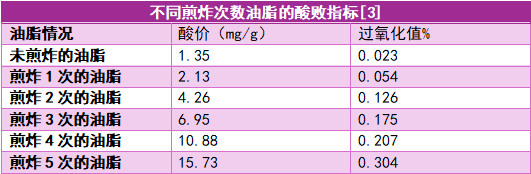 首先,經(jīng)過了高溫煎炸后的食用油,營養(yǎng)價值會降低,破壞了必需脂肪酸和脂溶性維生素。一項發(fā)表在《食品科技》上的研究,利用高效液相色譜(HPLC)測定回鍋油中的脂肪酸成分,結(jié)果發(fā)現(xiàn):花生油中亞麻酸、亞油酸和油酸等不飽和脂肪酸含量通常在 85% 以上,但在經(jīng)過了 2 小時的煎炸后只剩下 17% 了。植物油中的維生素 E 經(jīng)過高溫油炸會有 70%~90%會被破壞,反復(fù)使用的“回鍋油”破壞程度更為嚴(yán)重。
