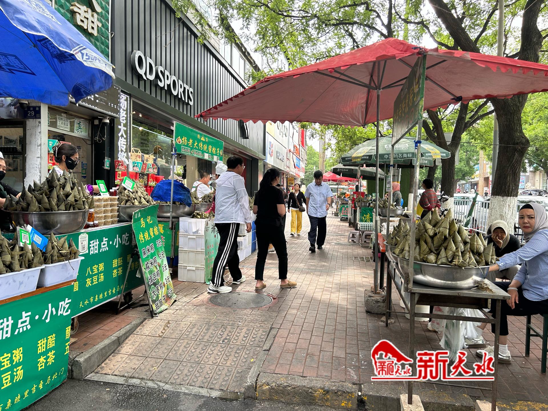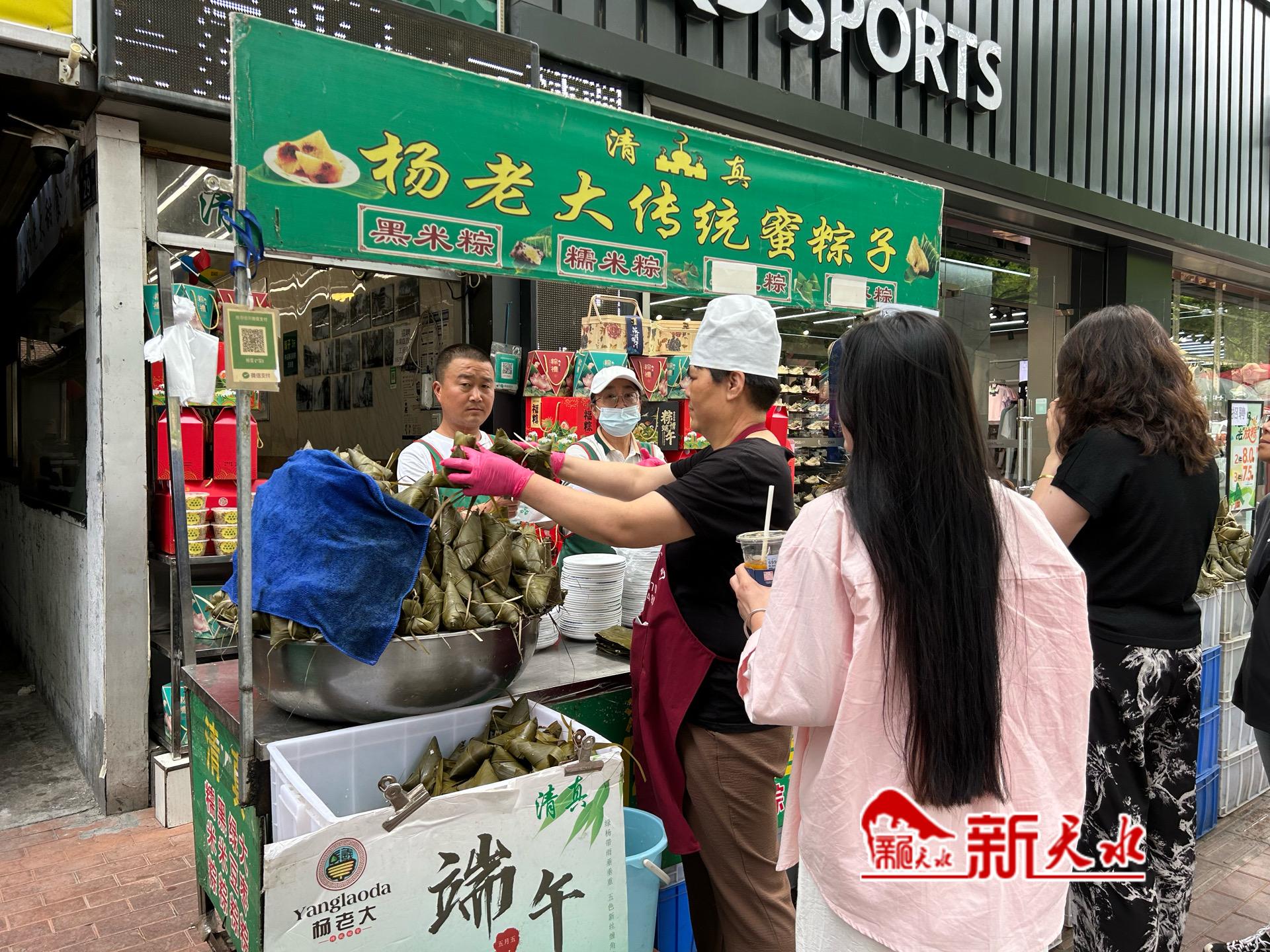 傍晚時(shí)分,粽子店的攤位前仍有人購(gòu)買品嘗,荷包攤主在陸續(xù)整理剩余貨品。街頭提著節(jié)禮的行人步履匆匆,空氣中浮動(dòng)的粽香與隱約的草藥氣息,交織成城市中端午臨近前特有的生活圖景。