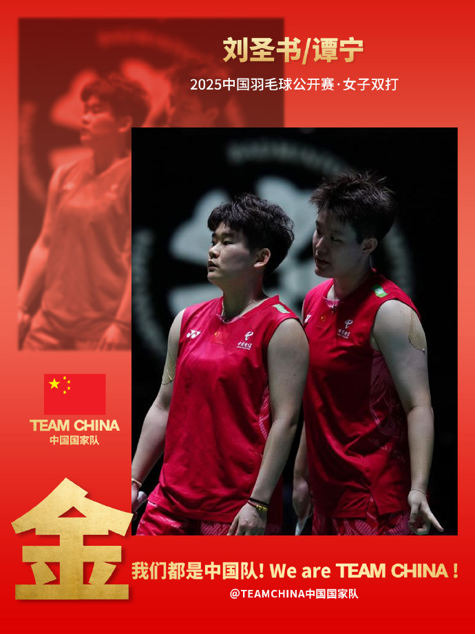 7月27日,2025中國(guó)羽毛球公開賽女雙決賽,劉圣書/譚寧2-1力克隊(duì)友賈一凡/張殊賢,獲得冠軍。三局比分為24-22、17-21、21-14。