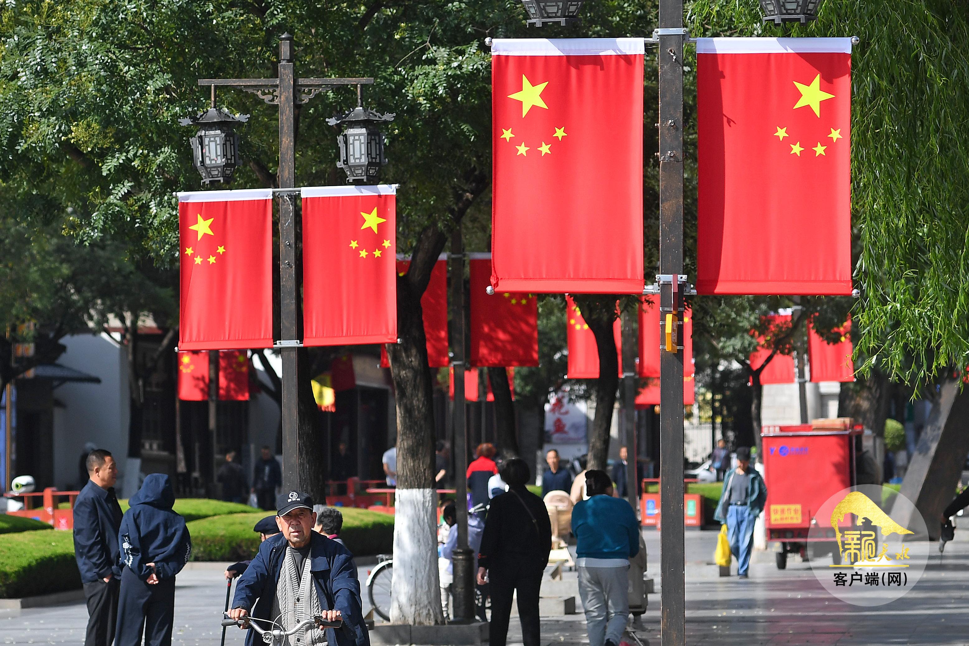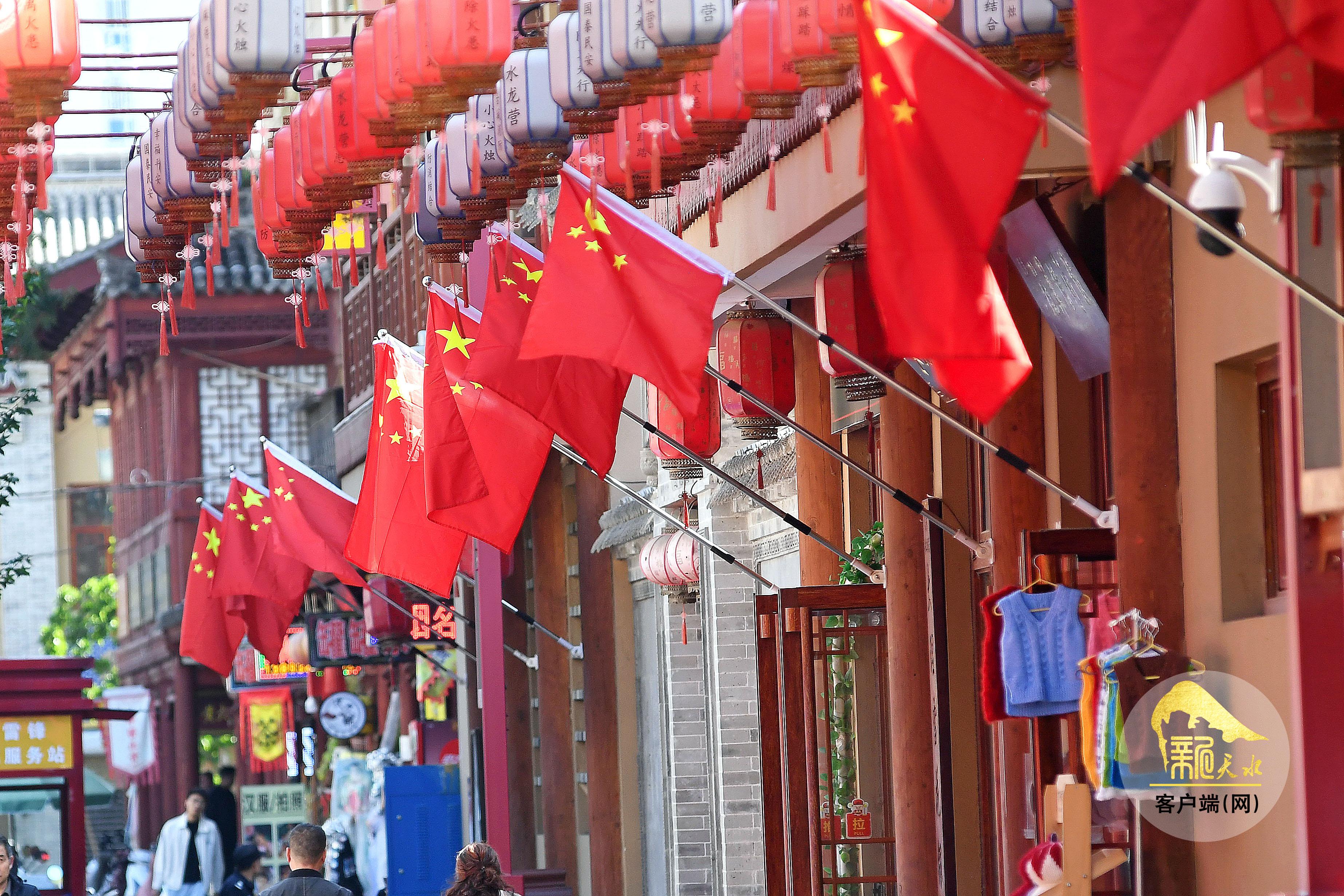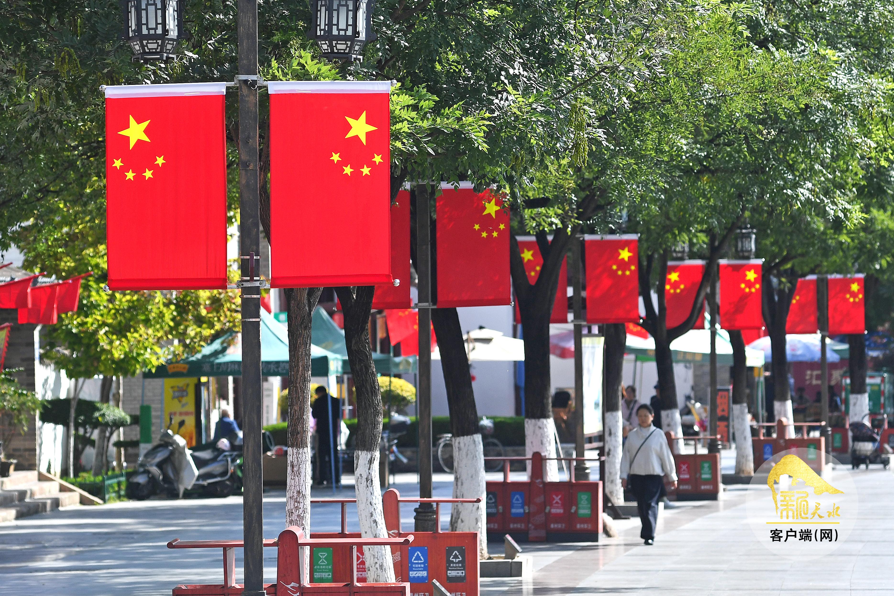 國慶節(jié)臨近,秦州城區(qū)各條街道懸掛起五星紅旗,處處洋溢著喜慶祥和的國慶氛圍。(新天水記者 孫鎮(zhèn) 攝)
