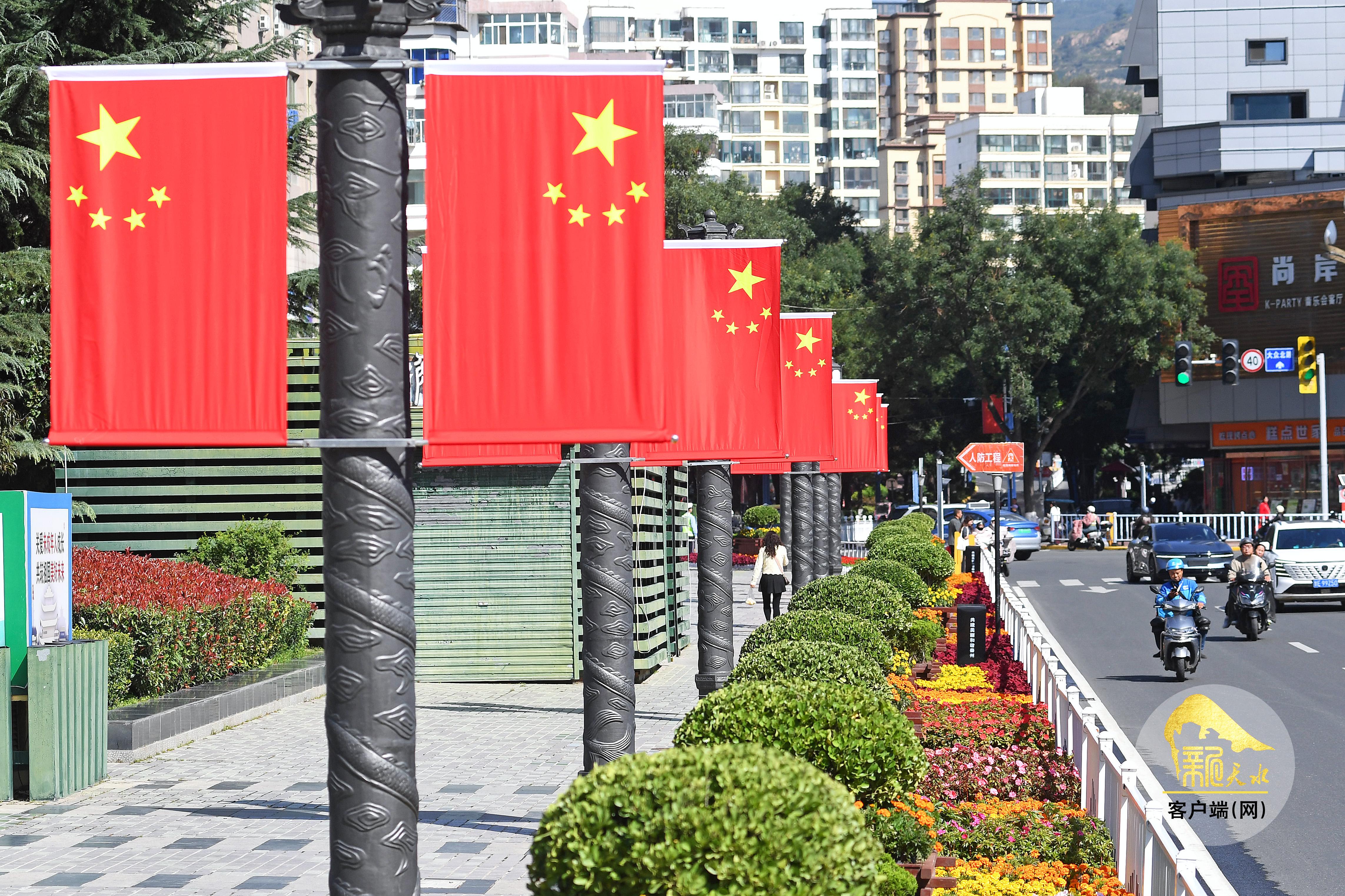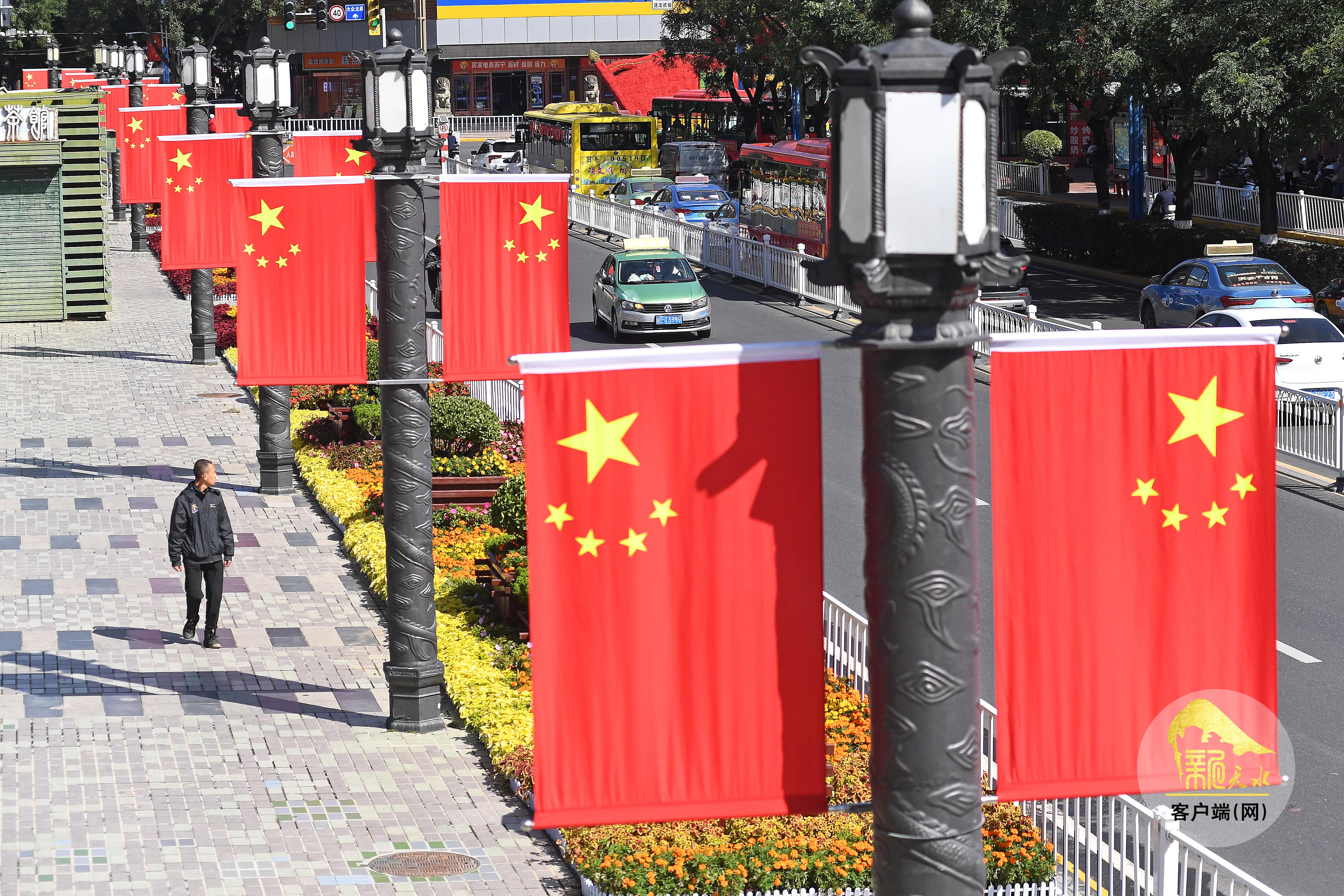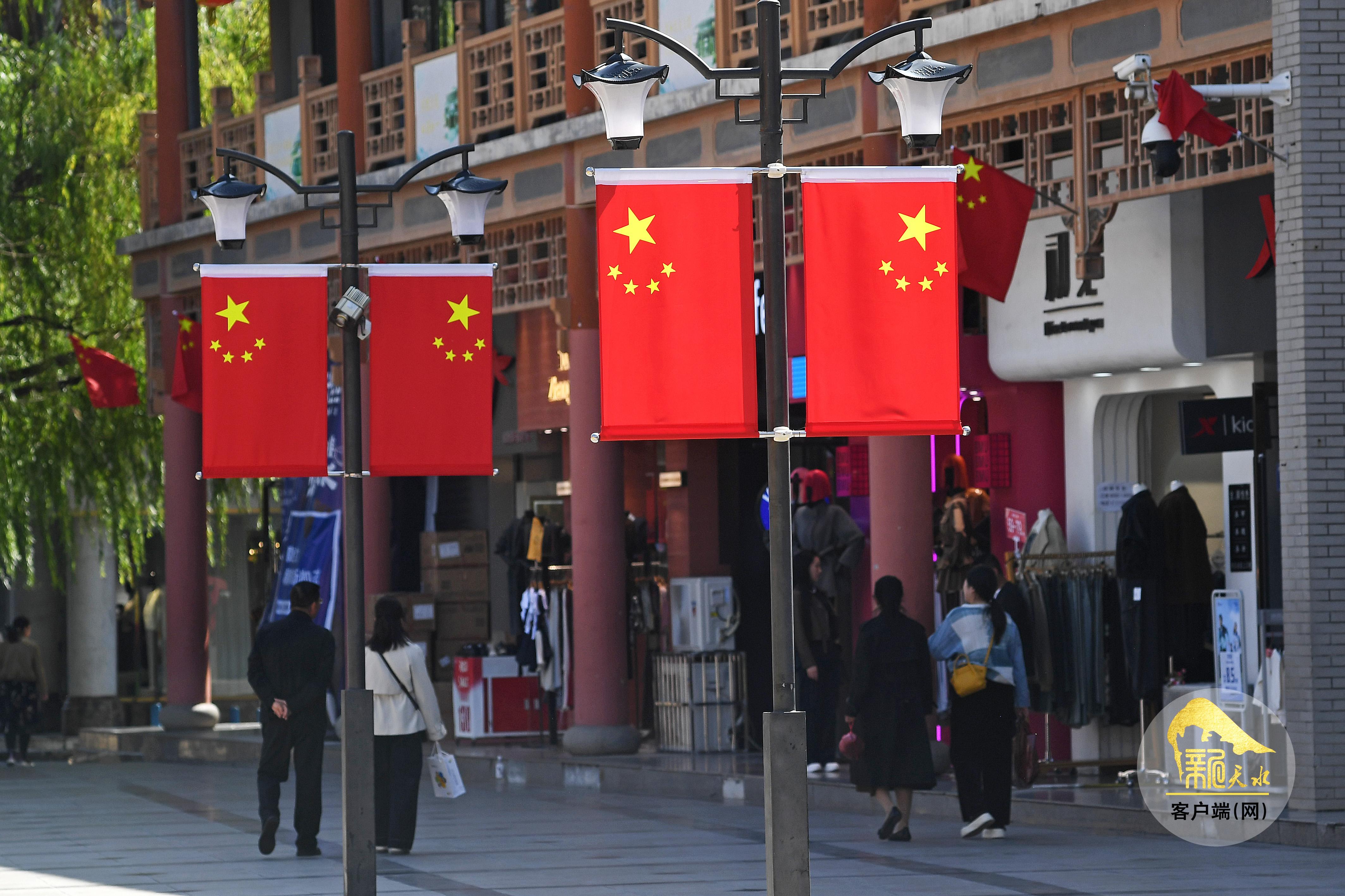 國慶節(jié)臨近,秦州城區(qū)各條街道懸掛起五星紅旗,處處洋溢著喜慶祥和的國慶氛圍。(新天水記者 孫鎮(zhèn) 攝)