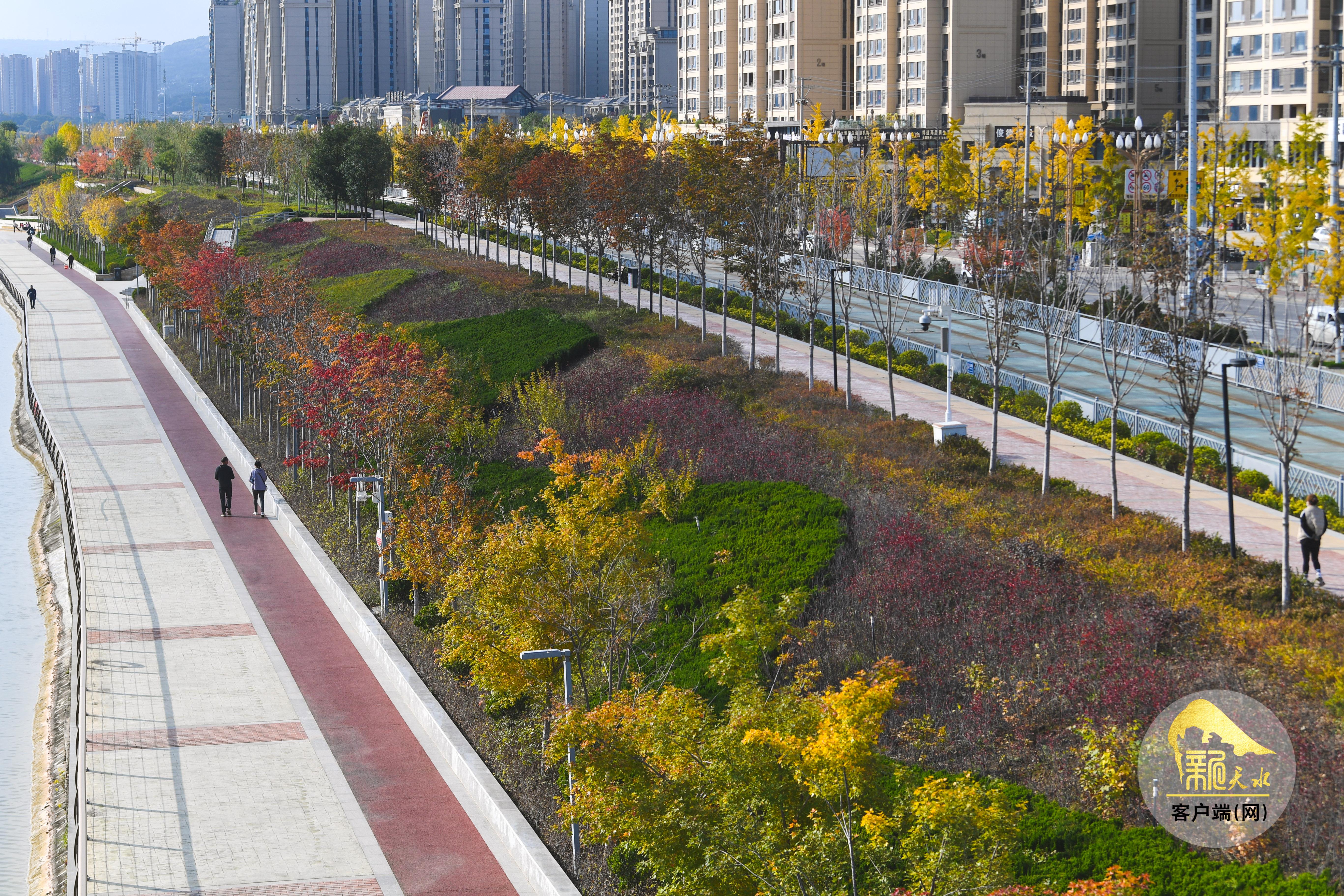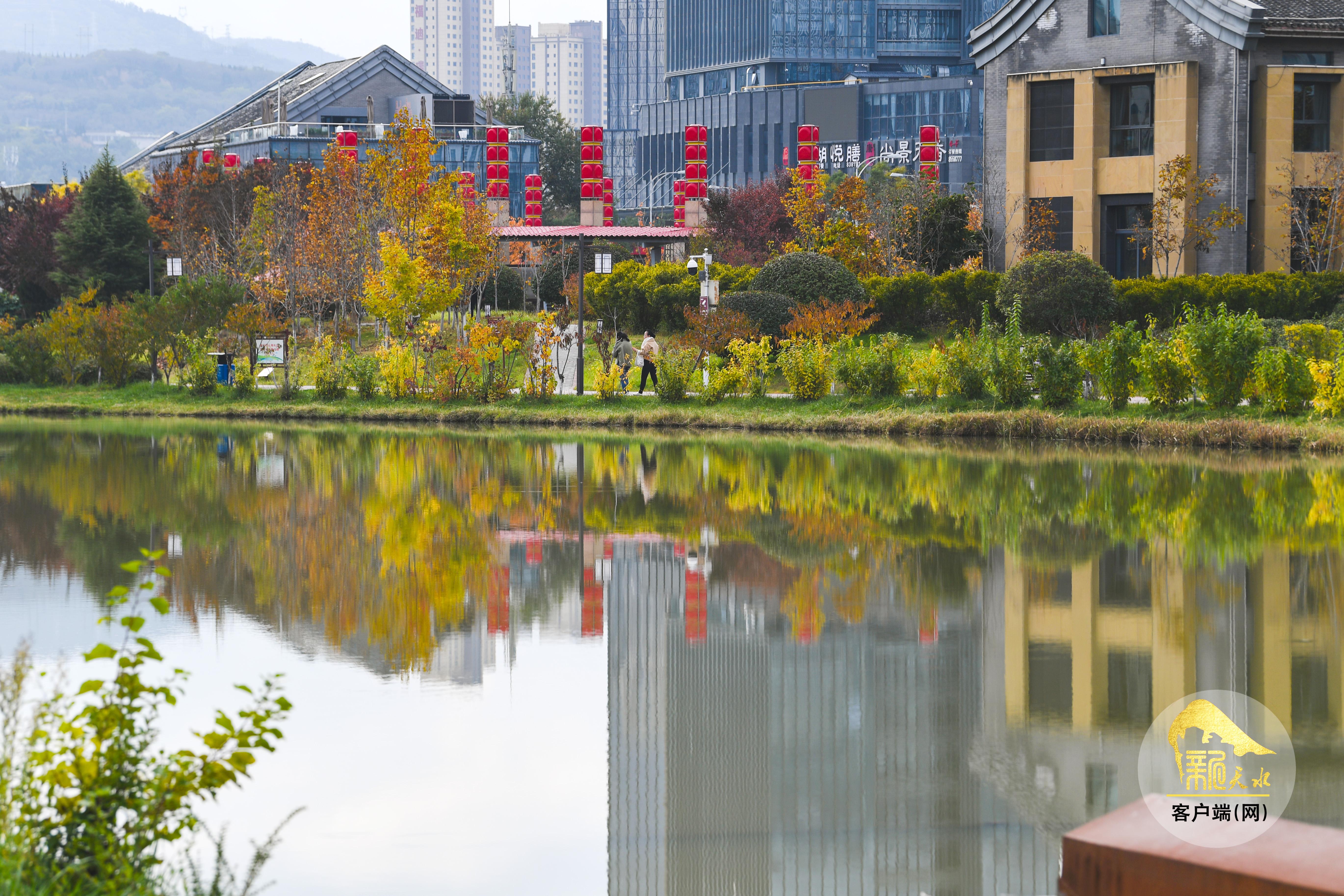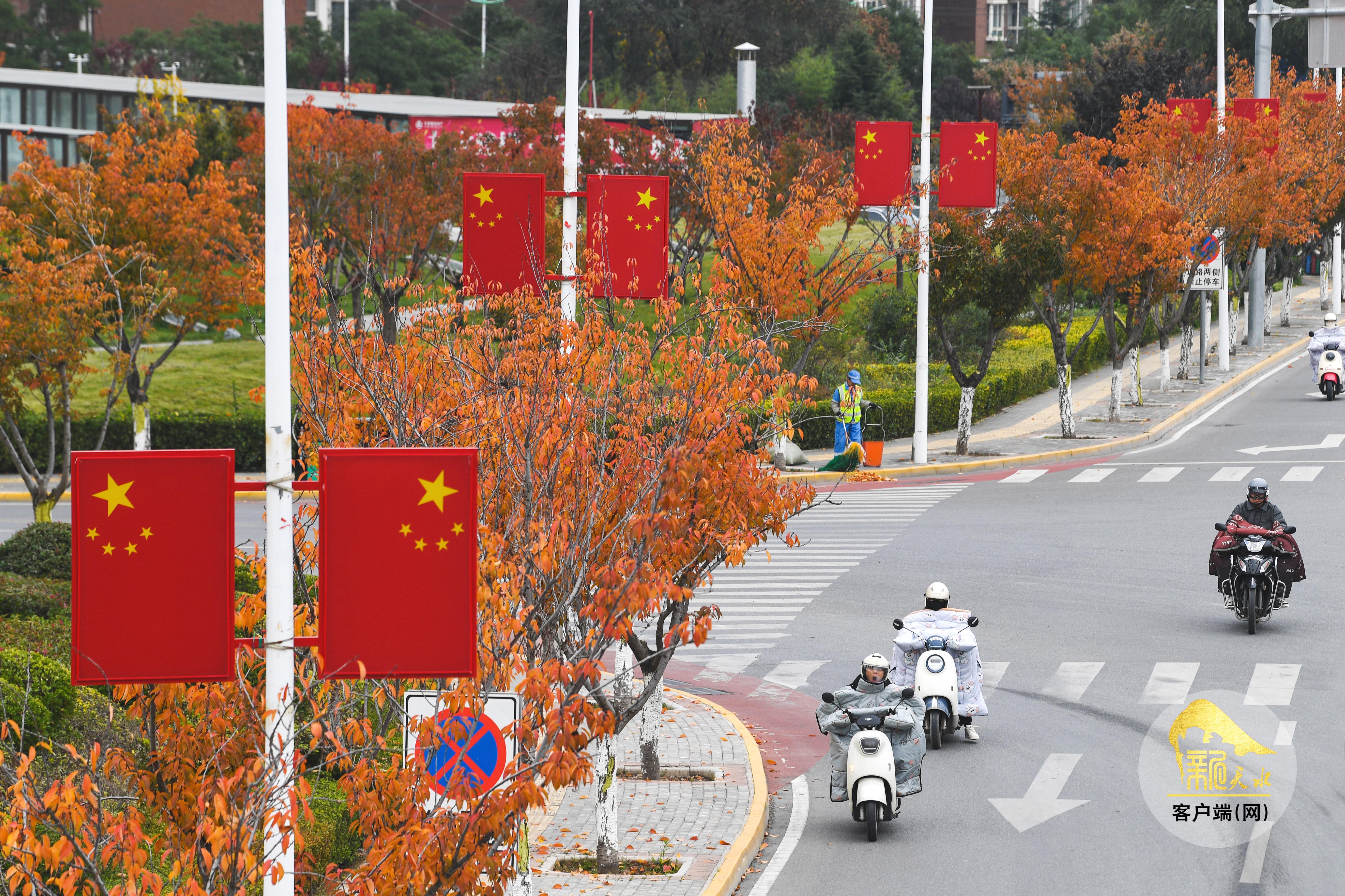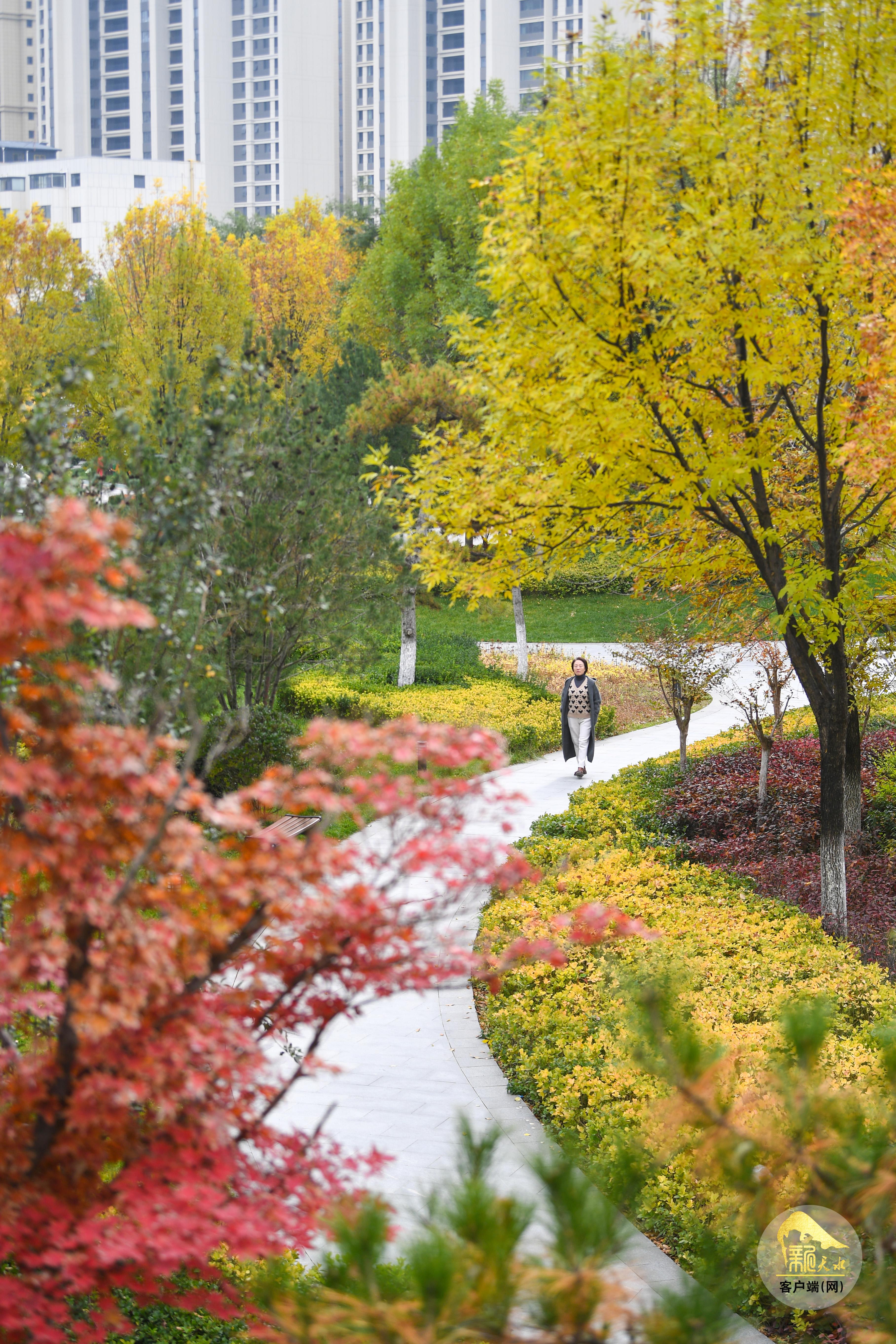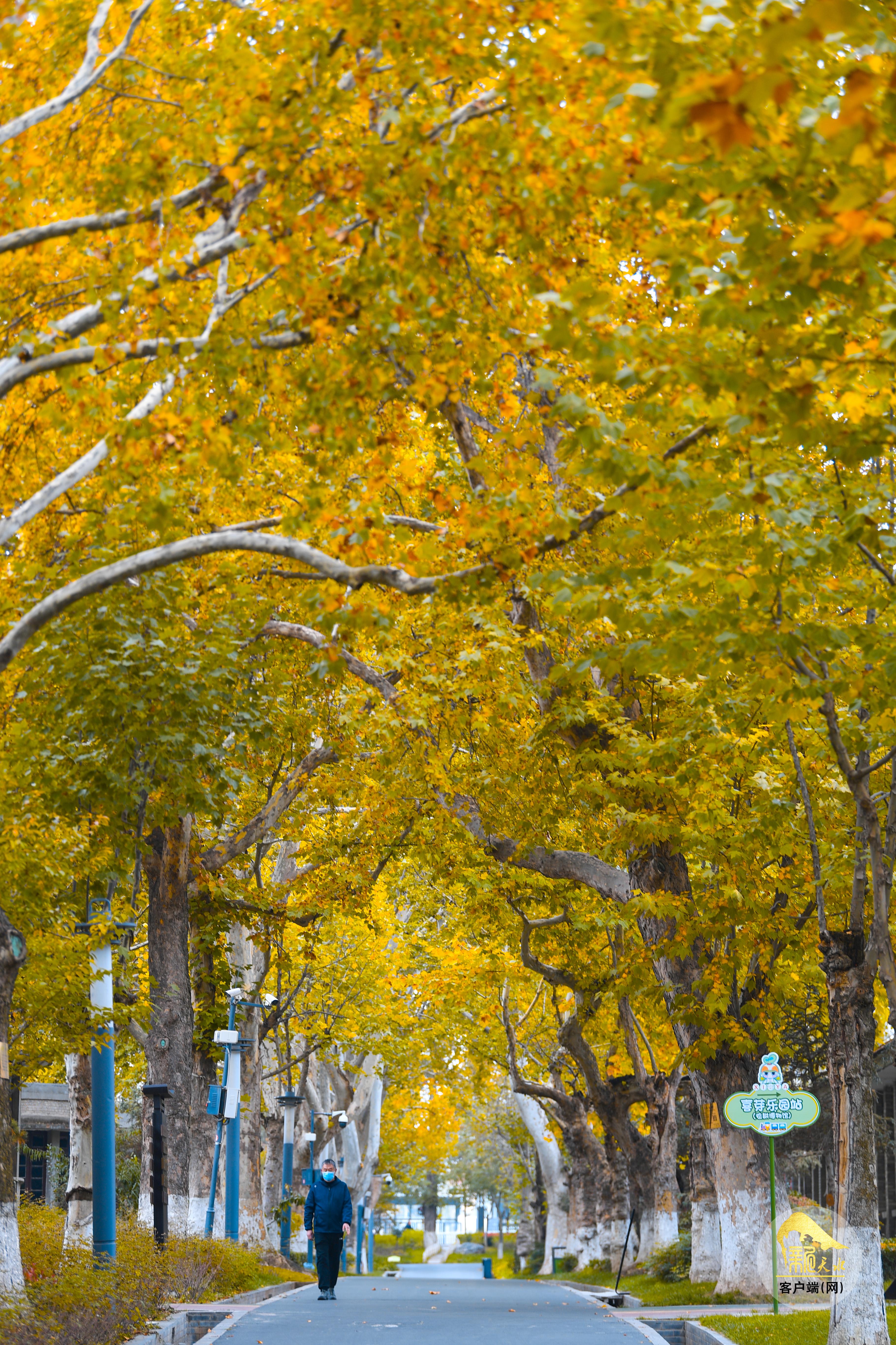 秋風蕭瑟,層林盡染。金秋的天水像是被大自然打翻的“調(diào)色盤”,金黃的銀杏、火紅的楓葉、橙黃的梧桐交織在一起,秋韻格外濃郁,色彩鋪展得恰到好處,放眼望去,如詩如畫的美景盡收眼底。