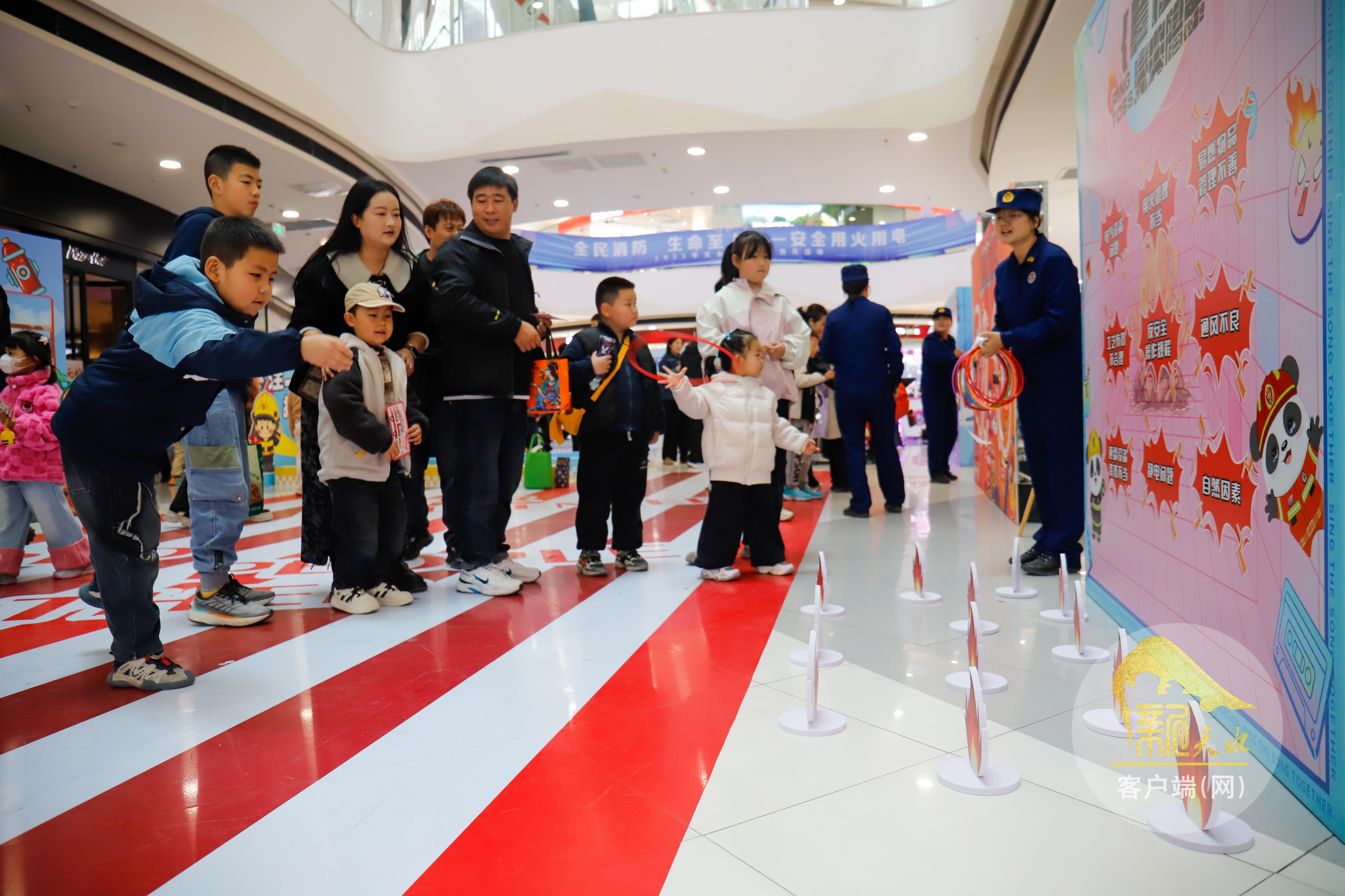 當(dāng)天,在秦州區(qū)萬達(dá)廣場(chǎng)同步開展消防宣傳嘉年華系列活動(dòng)。現(xiàn)場(chǎng)設(shè)置“滅火達(dá)人就是我”“烈焰突圍”“火災(zāi)隱患大找茬”“超強(qiáng)臂力”等8大趣味關(guān)卡?;顒?dòng)中,消防員卡通人偶與市民互動(dòng)合影,群眾在消防員指引下識(shí)別常見火災(zāi)隱患,練習(xí)正確使用滅火器材,小朋友們專注穿越“火線迷宮”,答題區(qū)里生活化考題讓消防知識(shí)入腦入心。一系列活動(dòng)點(diǎn)燃市民參與熱情,進(jìn)一步筑牢消防安全防線。