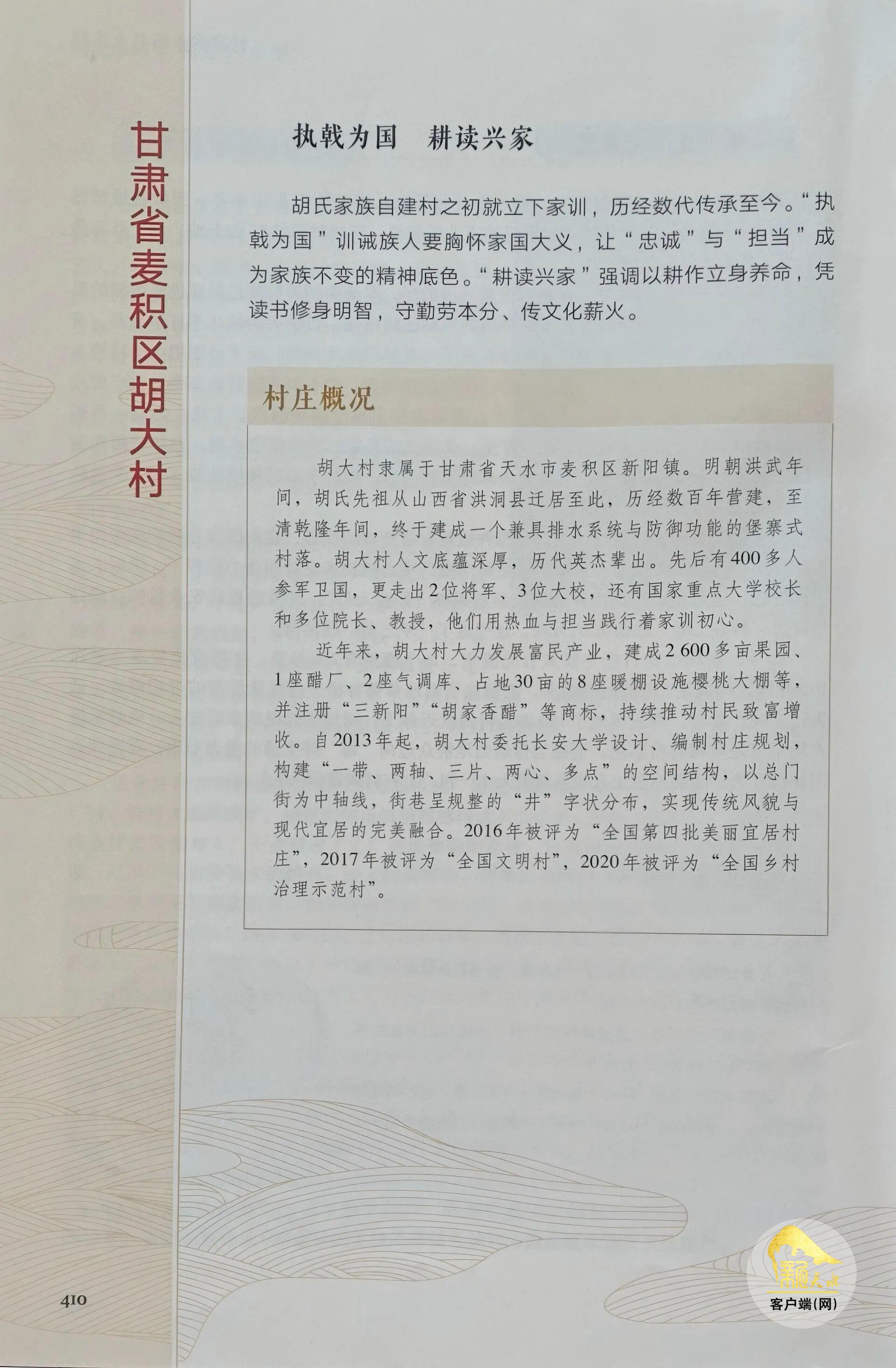 天水麥積胡大村家風(fēng)故事入選全國百大家風(fēng)家訓(xùn)故事匯編