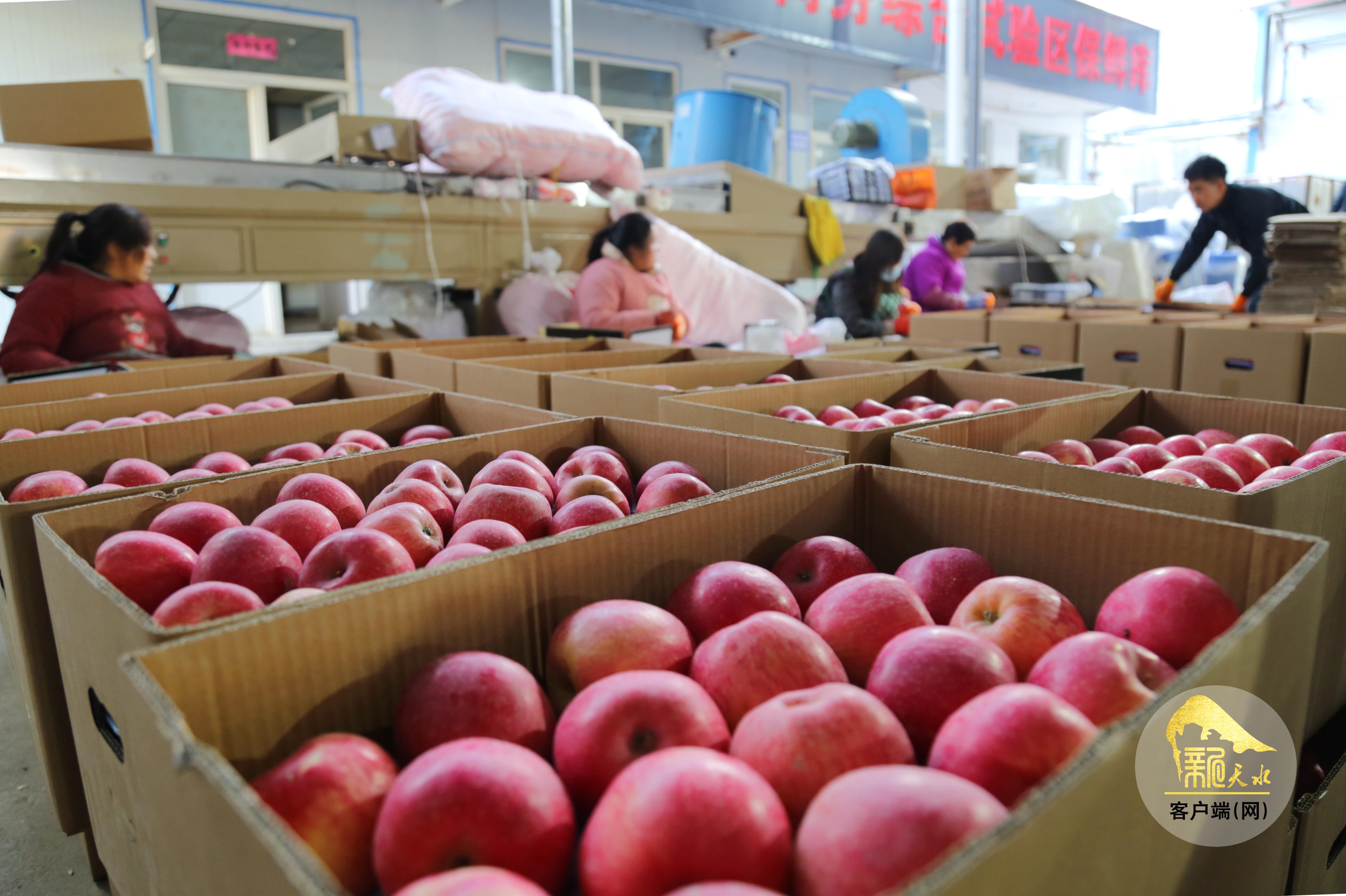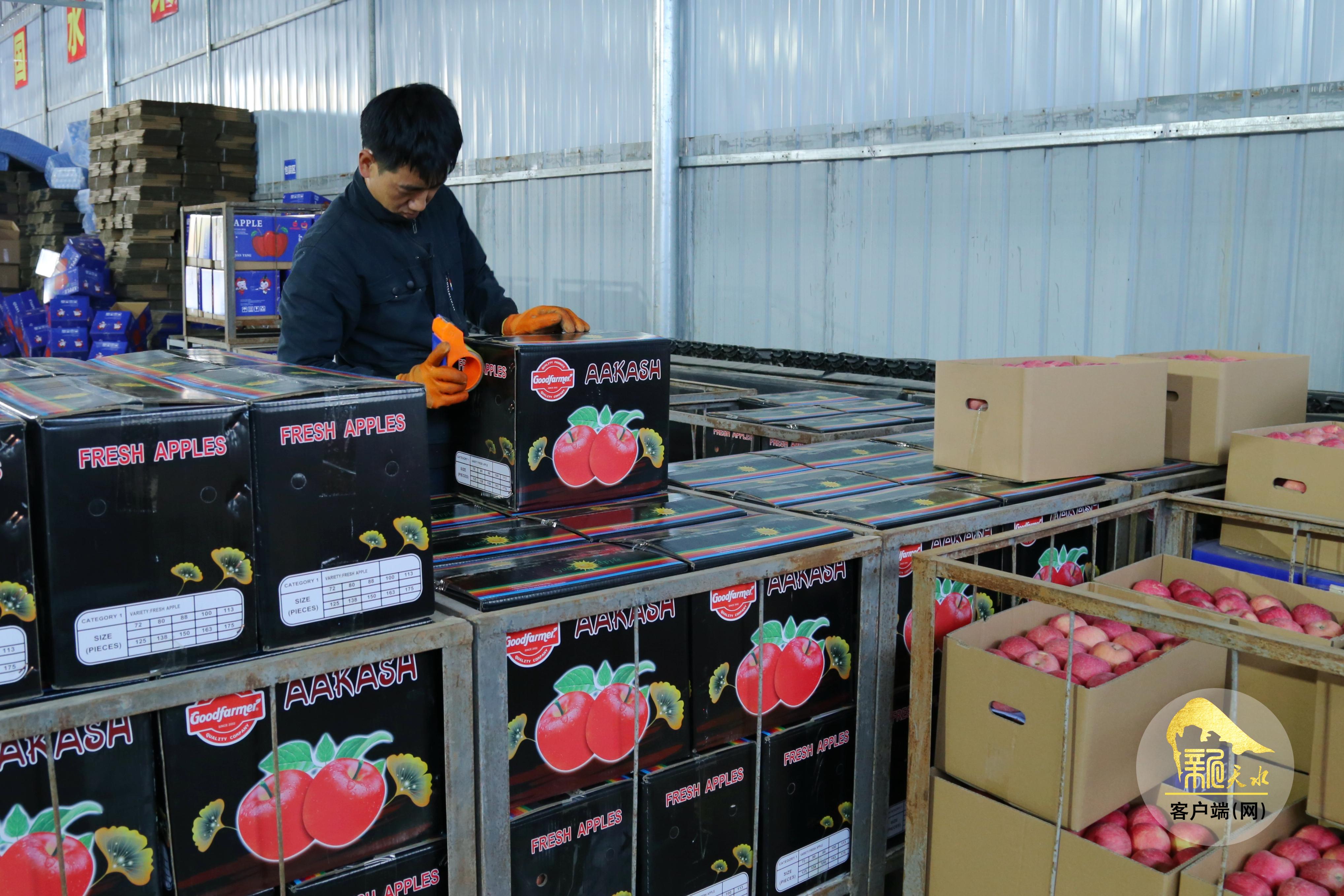 在天水峻澤國際貿(mào)易有限公司的保鮮庫內(nèi),工人們正忙著分揀、打包秦安蘋果。黑色箱子發(fā)往尼泊爾,藍色箱子運往越南,紅色箱子將通過全冷鏈海運發(fā)往新加坡,不同顏色的包裝承載著秦安農(nóng)特產(chǎn)品“走出去”的夢想。