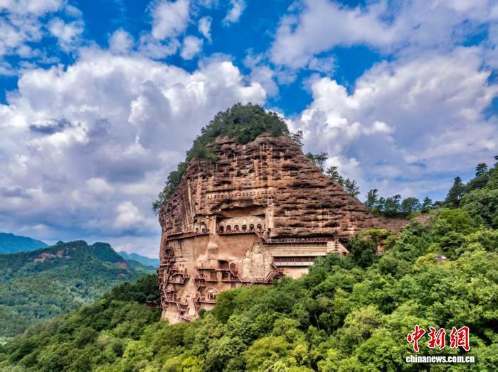 圖為航拍鏡頭下的天水麥積山石窟。(資料圖)麥積山石窟藝術(shù)研究所供圖