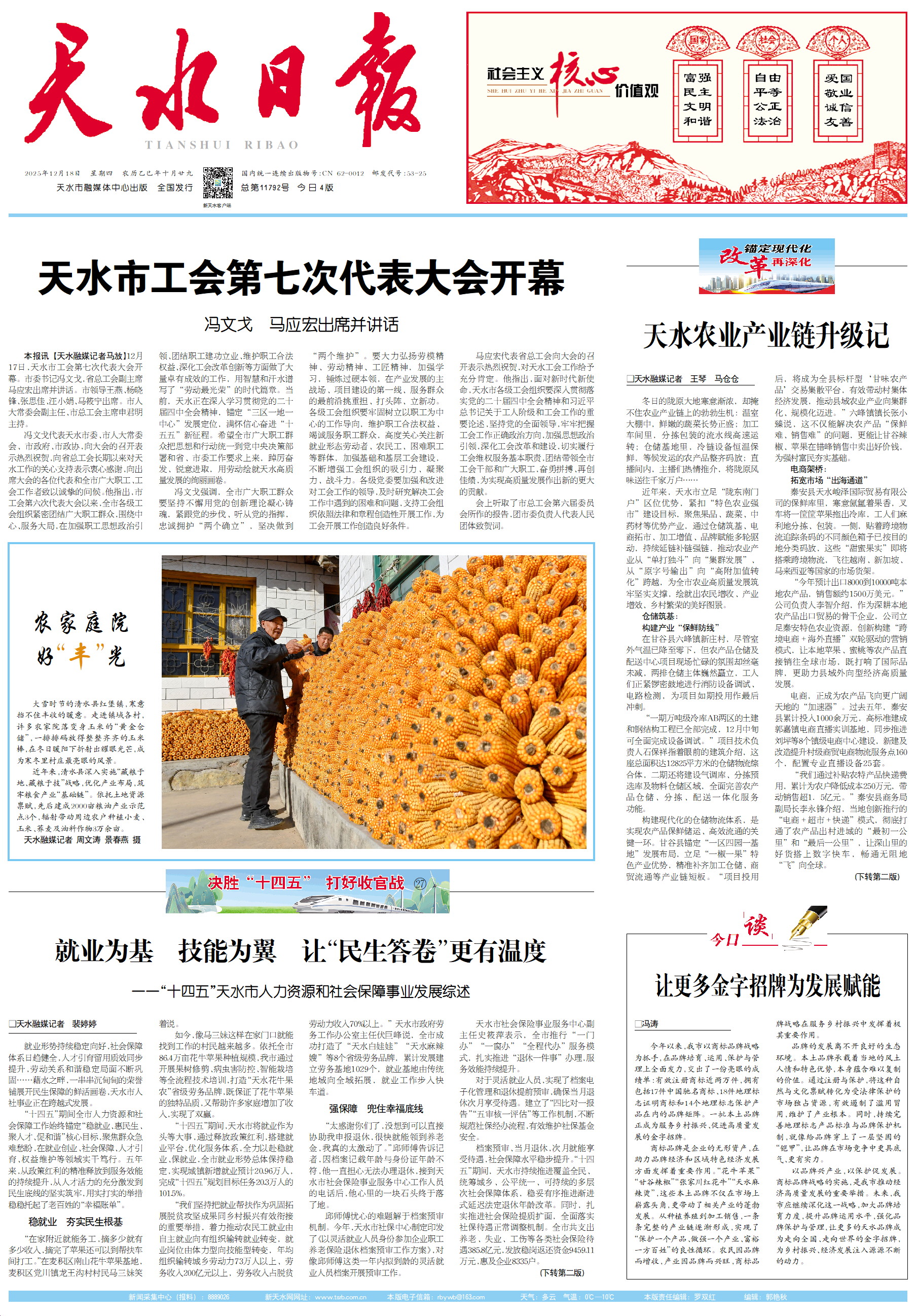 站在“十五五”新起點(diǎn),天水市人社系統(tǒng)將繼續(xù)錨定新目標(biāo),接續(xù)奮斗,未來(lái)五年讓就業(yè)服務(wù)更優(yōu)質(zhì)、收入增長(zhǎng)更同步、社保更可持續(xù)、勞動(dòng)關(guān)系更加和諧,用更暖心的人社服務(wù),把“民生清單”變成“幸福答卷”,讓老百姓獲得感“成色”更足、幸福感更可持續(xù)、安全感更有保障。