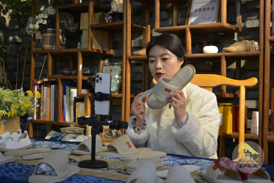 近年來,甘肅雅路人麻編工藝制品發(fā)展有限公司以產(chǎn)業(yè)為紐帶,帶動3000多名農(nóng)村婦女投身麻鞋鉤織、編織、納鞋底等工序,實現(xiàn)了掙錢顧家兩不誤。(天水融媒記者 張彬霞 趙軍霞 攝)