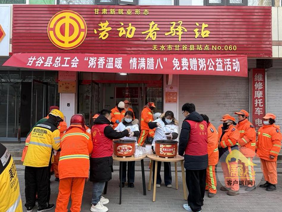 新天水訊 1月26日,甘谷縣總工會(huì)在新就業(yè)形態(tài)勞動(dòng)者驛站開展了“粥香暖冬、情滿臘八”公益活動(dòng),以傳遞工會(huì)組織對(duì)廣大職工的關(guān)懷,特別是向在嚴(yán)寒中堅(jiān)守崗位的戶外勞動(dòng)者表達(dá)敬意。