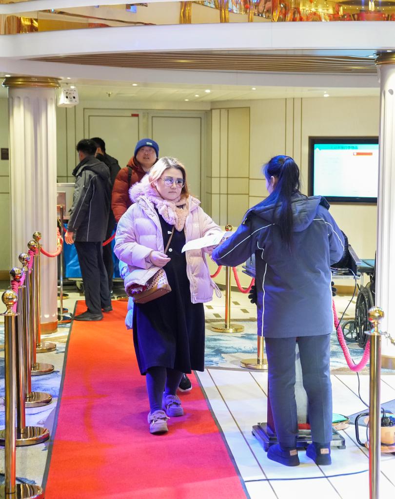 “放寒假了,想帶上孩子,我們一家五口人來體驗‘愛達·魔都號’,沒想到今天這么幸運?!眮碜陨虾5睦盍张?月8日成為愛達郵輪的第100萬名旅客。今年春運,郵輪經(jīng)濟吹來一陣新風,為旅客帶來融合文旅和交通的新鮮出行體驗。