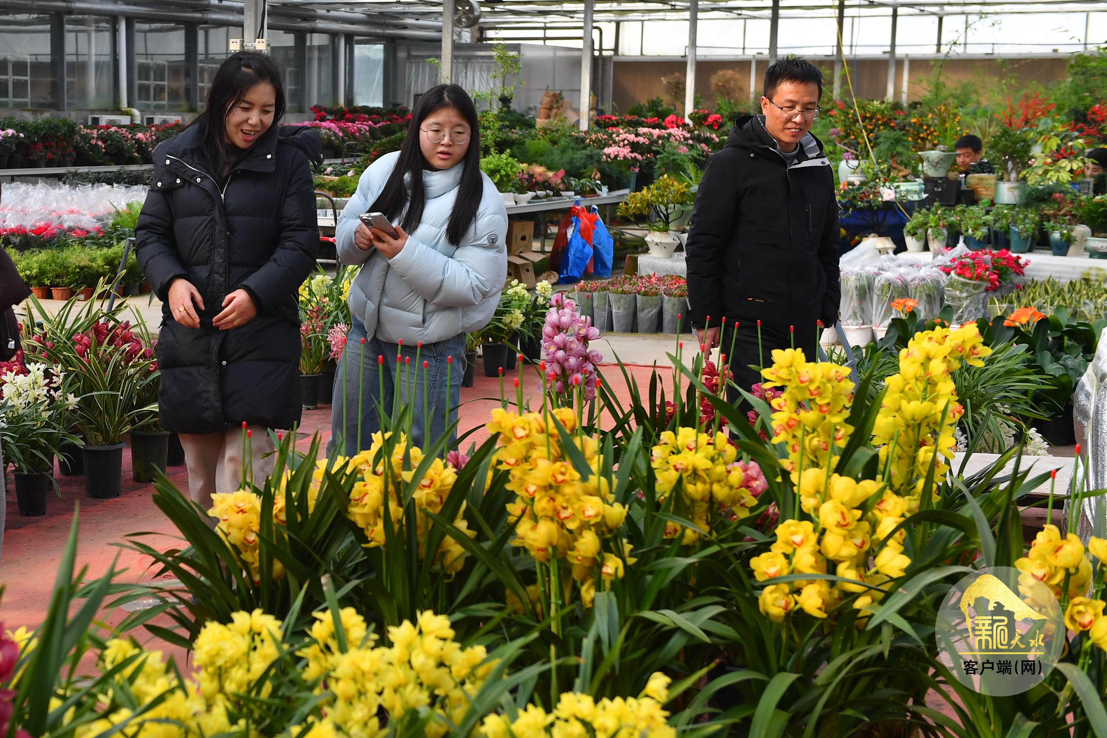 隨著春節(jié)臨近,天水市各大花卉市場年宵花陸續(xù)上市,進入銷售旺季,吸引了眾多市民前來賞花、購花,為即將到來的新春佳節(jié)增添喜慶氣氛。(天水融媒記者 周文濤 攝)