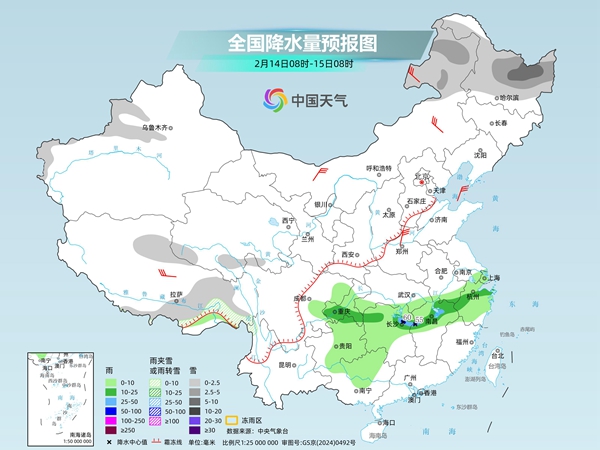 氣象部門提醒,明起至16日,南方新一輪降水來襲,江南部分地區(qū)有較強降雨伴雷電,臨近春節(jié)假期,公眾需注意防范降雨可能導(dǎo)致的道路濕滑、能見度下降等對交通出行的不利影響。