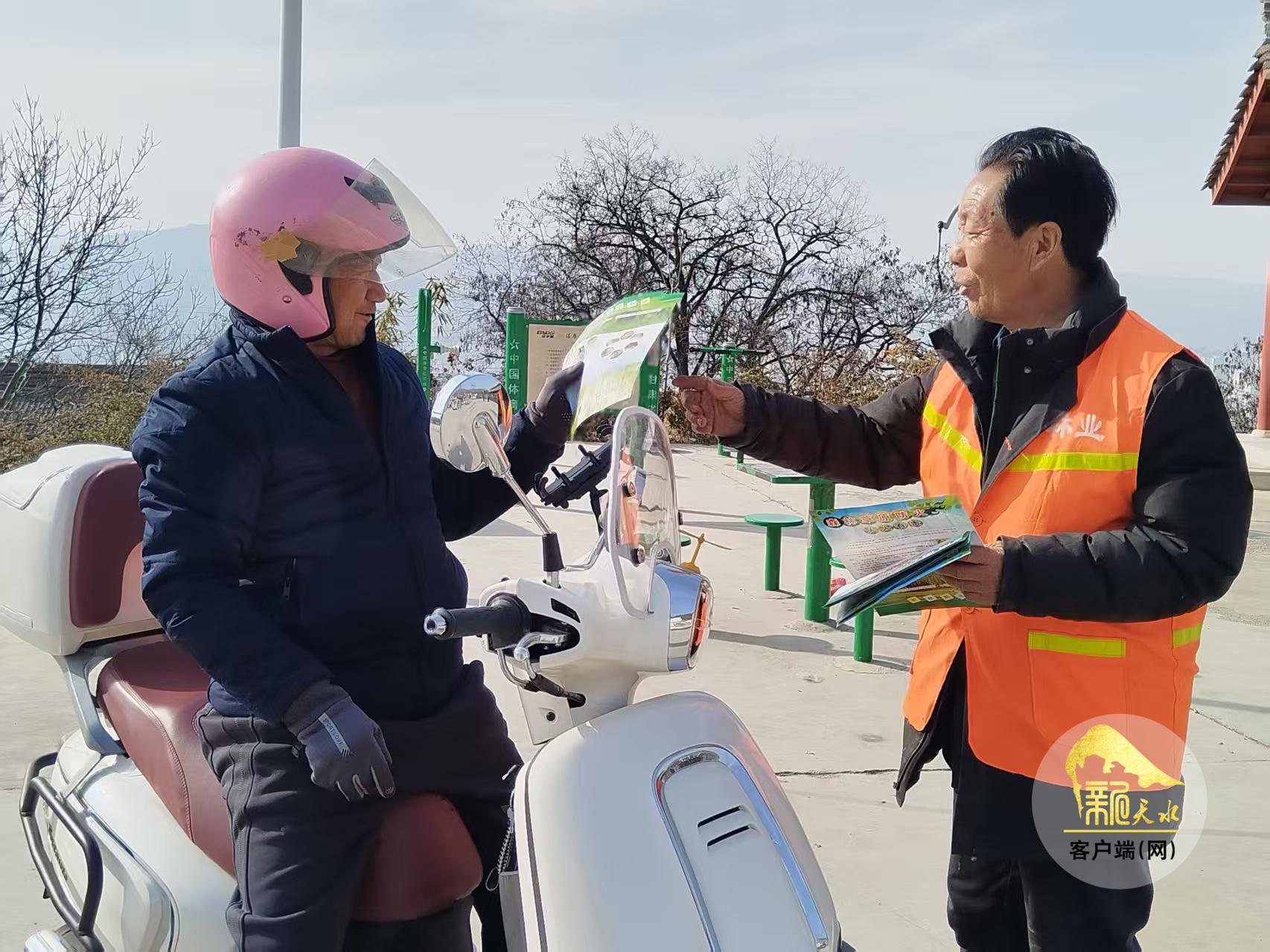“馬上過年了,一定要注意防火安全,發(fā)現意外情況,可以撥打宣傳單上的號碼12119?!薄昂⒆觽?,你們一定不要在林區(qū)隨意玩火,遇到其他孩子玩火,也要上前勸阻。”2月13日,秦州區(qū)林業(yè)和草原局護林員來到林區(qū)內各村莊,向群眾發(fā)放了森林草原防火宣傳彩頁。春節(jié)將至,北山護林員在加密巡查頻次,確保第一時間發(fā)現和制止違規(guī)用火行為的同時,也加大了防火宣傳力度。