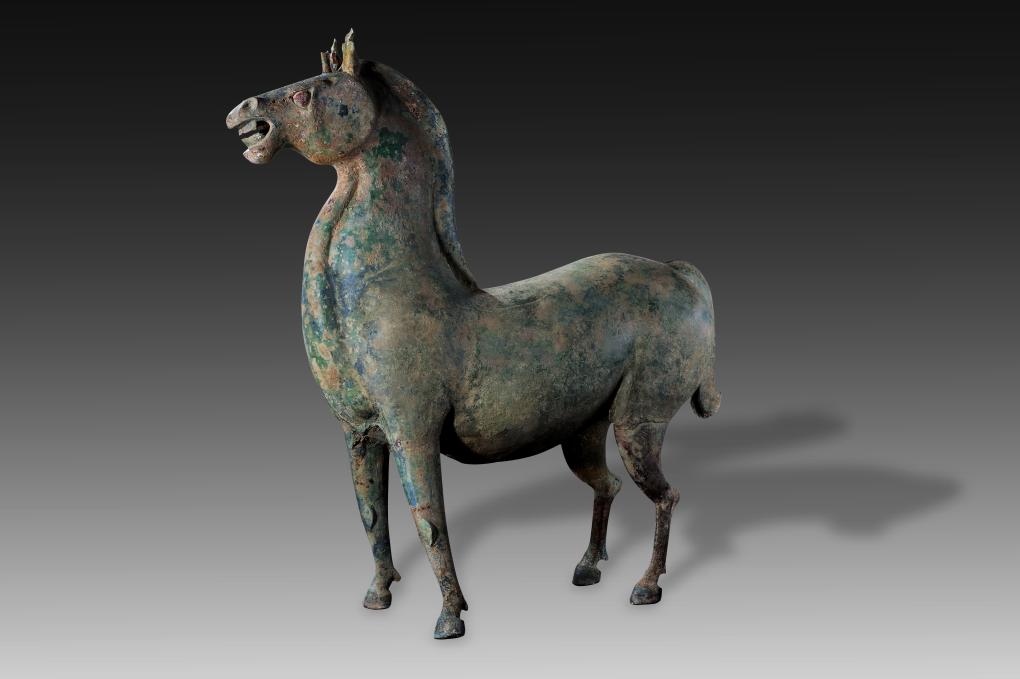 襄陽博物館內(nèi)展出的青銅馬。新華社發(fā)