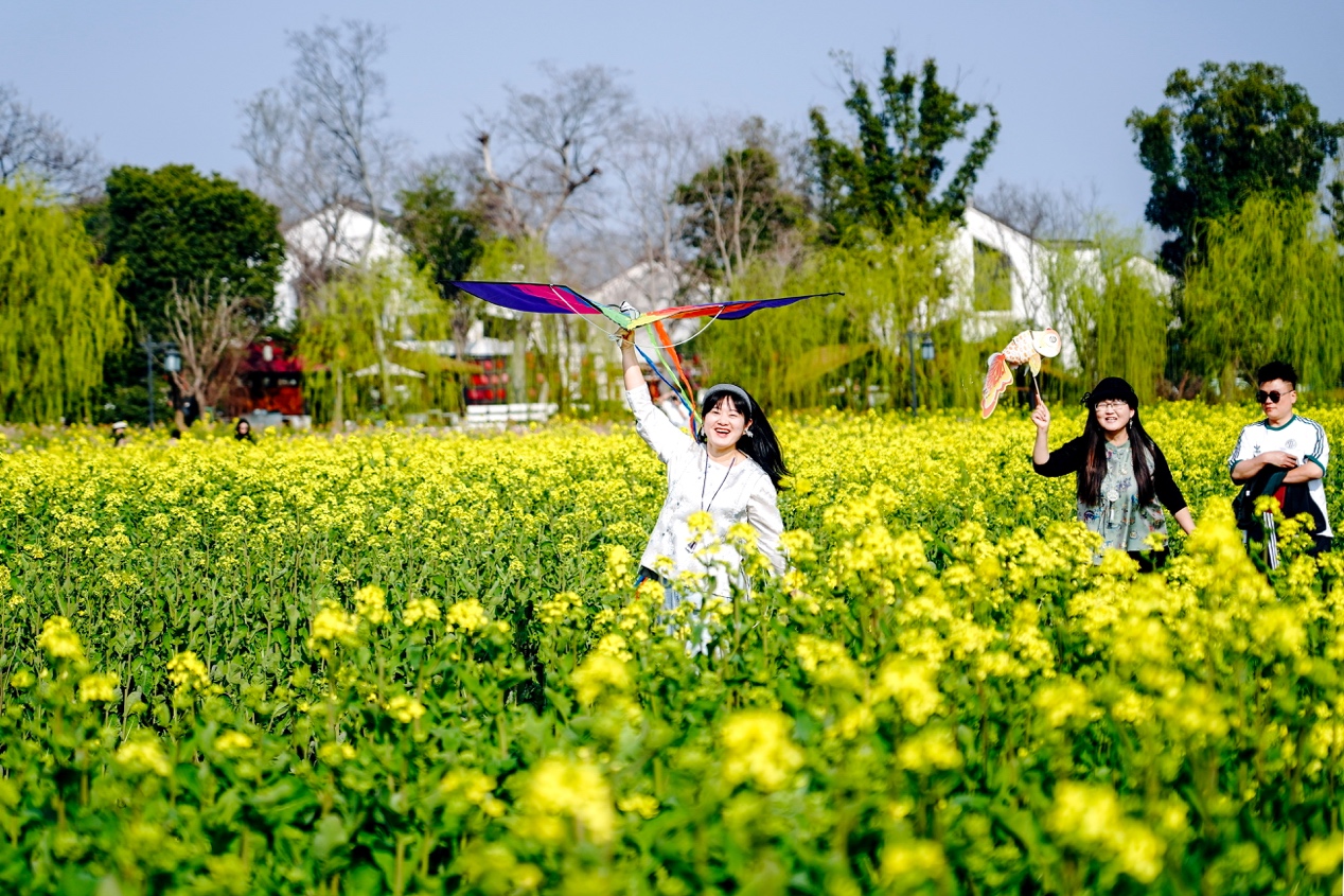 ▲上圖:3月14日,游客在浙江省湖州市吳興區(qū)八里店鎮(zhèn)潞村油菜花海里放飛風(fēng)箏,享受春日里快樂時光。(潘學(xué)康/人民視覺)