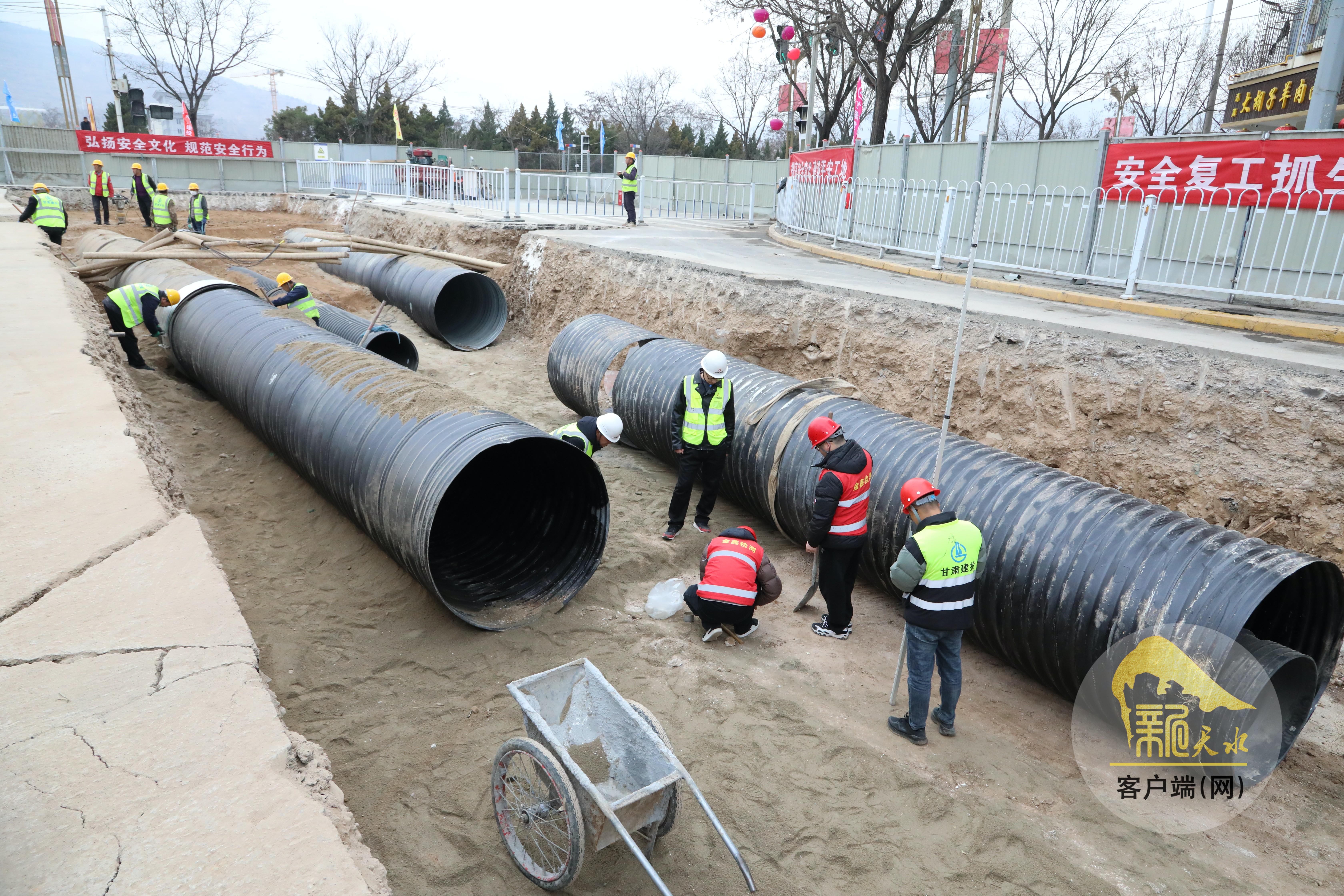 近日,在秦安縣城區(qū)供排水管網提升改造工程建設現場,工人們正在加速施工。該項目是秦安縣完善基礎設施、提升城市承載力的重點民生工程,建成后將顯著提升城市排水系統效率,有效緩解城市內澇問題,進一步改善居民生活環(huán)境,提升群眾幸福指數。(天水融媒記者 馬放 攝)