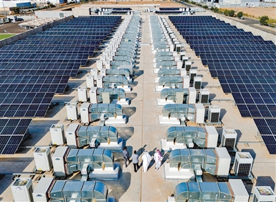 布設(shè)在沙特阿拉伯一家制衣工廠樓頂?shù)摹肮鈨铡毕到y(tǒng)。珠海格力電器股份有限公司供圖