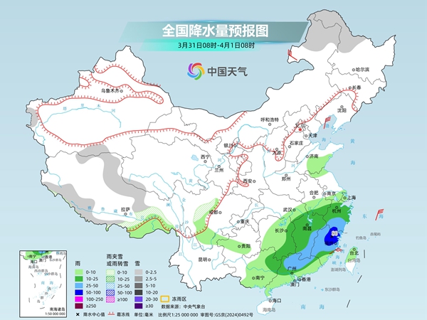 今明兩天(3月30日至31日),南方仍有大范圍降雨,雨帶會(huì)逐漸東移南壓,并伴有強(qiáng)對(duì)流天氣。在冷空氣和降雨的共同影響下,東北、華北至長(zhǎng)江中下游等地氣溫陸續(xù)下滑,而華南地區(qū)炎熱持續(xù),局地或有高溫天氣出沒。
