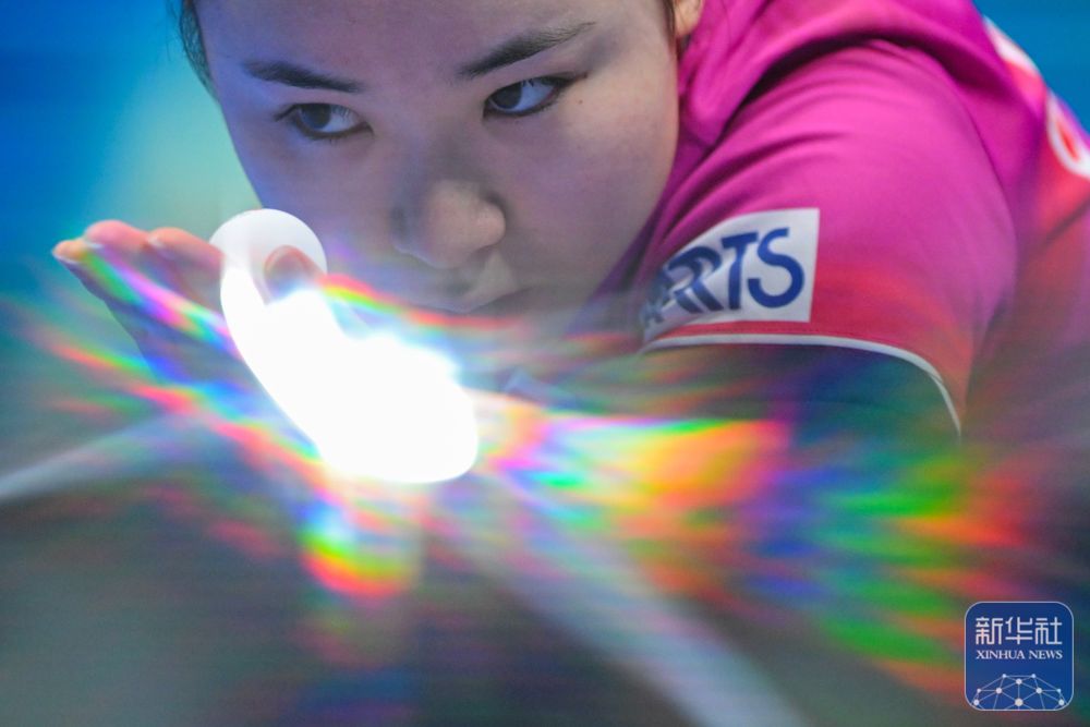 ↑中國選手蒯曼在女子單打小組賽中回球。最終,她3比2戰(zhàn)勝法國選手夏洛特·盧茨。