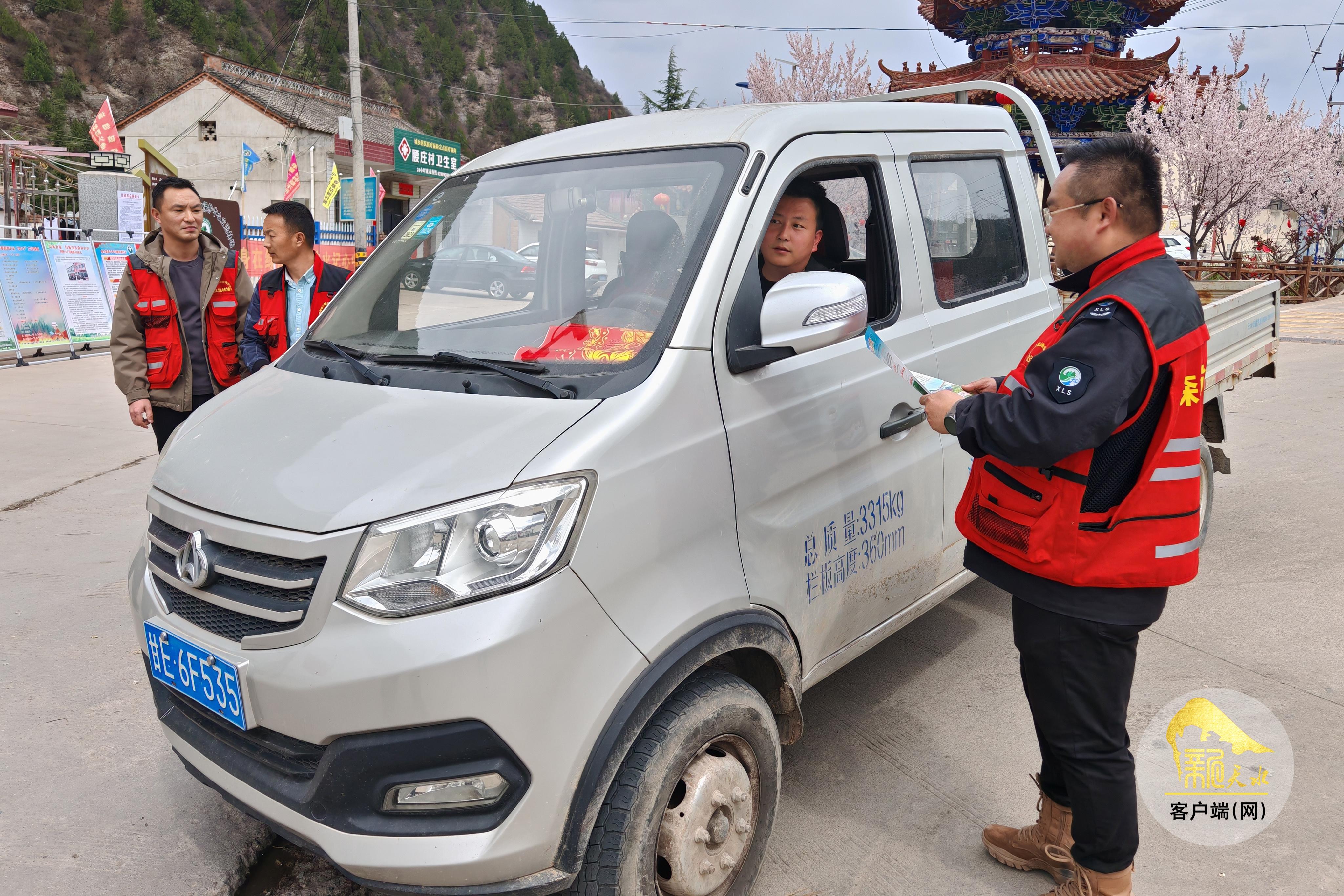 “大叔,請(qǐng)不要帶火種進(jìn)山,容易引發(fā)火災(zāi)。咱們用鮮花祭掃,既安全又文明?!痹邳h川鎮(zhèn)花廟村進(jìn)山卡點(diǎn),值守的鎮(zhèn)村干部和黨員志愿者發(fā)現(xiàn)一位大叔攜帶香燭和打火機(jī)準(zhǔn)備進(jìn)山祭掃,立即上前耐心勸導(dǎo)。