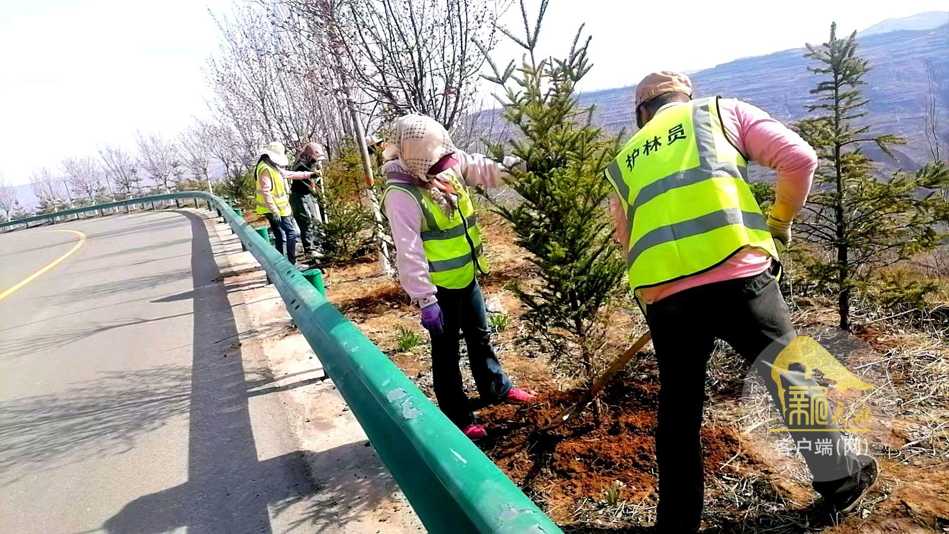在涇甘公路千戶段,大家分工協(xié)作,揮鍬鏟土、扶苗填坑、踩實(shí)澆水,每個(gè)環(huán)節(jié)都一絲不茍。一株株新栽的云杉苗木迎風(fēng)挺立,為春日的鄉(xiāng)村道路增添了勃勃生機(jī)。“我們嚴(yán)格按照‘三埋兩踩一提苗’的技術(shù)要求進(jìn)行栽植,確保每棵樹都能成活。云杉根系較淺,栽植時(shí)特別注意要淺栽多培土,澆水后還要及時(shí)覆膜保墑,這樣成活率高?!闭诂F(xiàn)場植樹的護(hù)林員王大叔一邊檢查樹坑深度,一邊向筆者介紹。