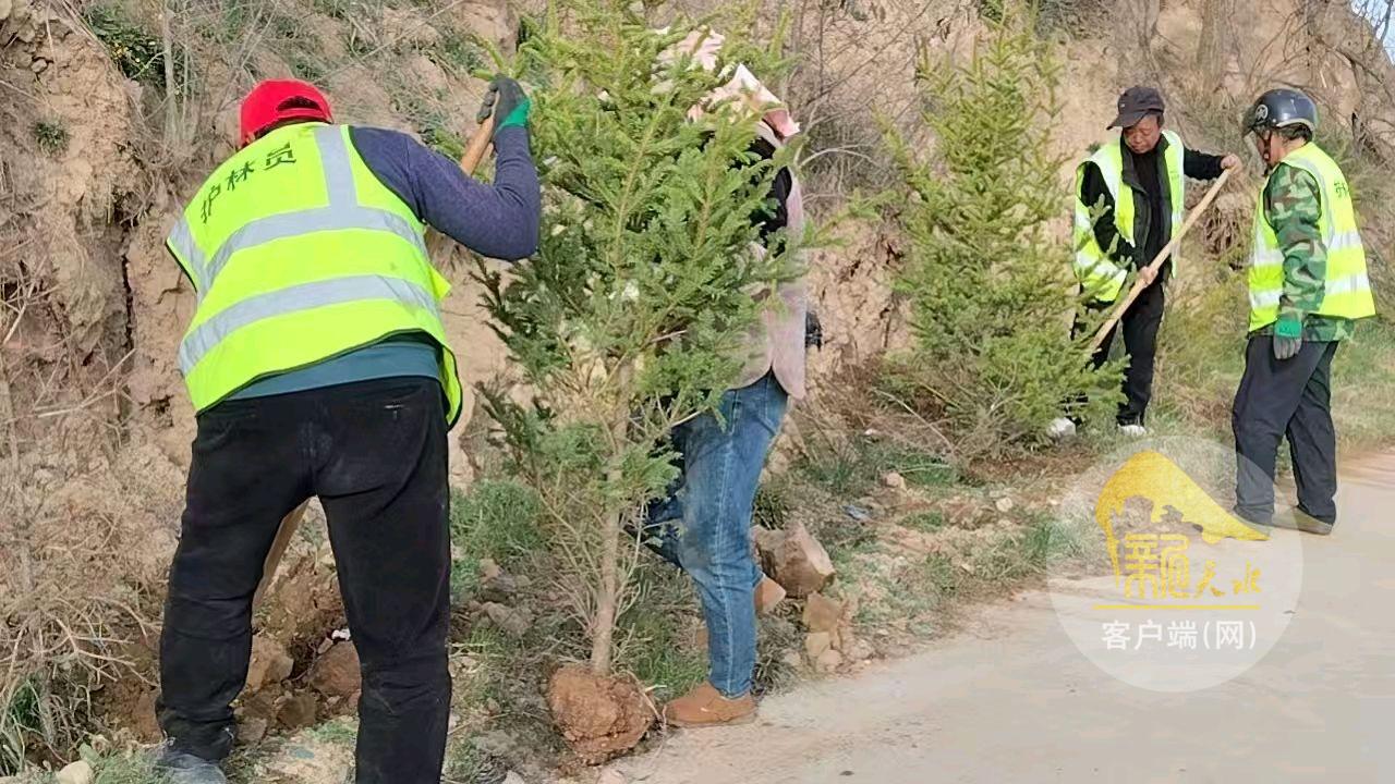 新天水訊 春回大地,萬物復(fù)蘇。今年春季墑情普遍較好,秦安縣千戶鎮(zhèn)搶抓有利時(shí)機(jī),全面啟動(dòng)行道樹補(bǔ)植補(bǔ)栽工作。連日來,在涇甘公路沿線及六圖村、劉莊村、王嶺村、川珠村等村主干道上,到處是一派繁忙景象,鎮(zhèn)村干部、護(hù)林員和公益性崗位人員正揮鍬鏟土、栽植新綠,為群眾出行打造“暢、安、舒、美”的路域環(huán)境。