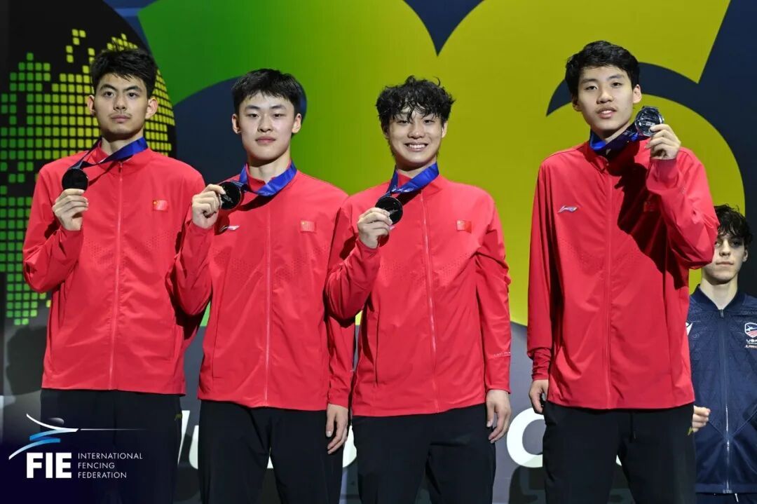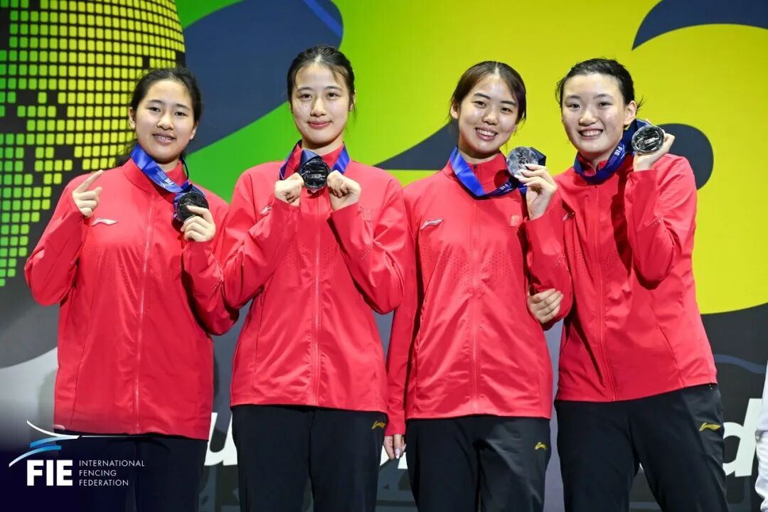 中國青年佩劍隊男女團體齊奪銀 暫居獎牌榜首位