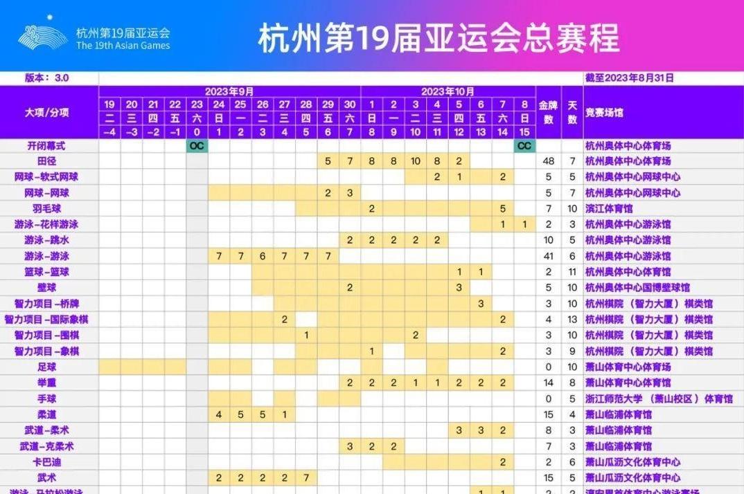 最新發(fā)布!杭州亞運會總賽程3.0版來了
