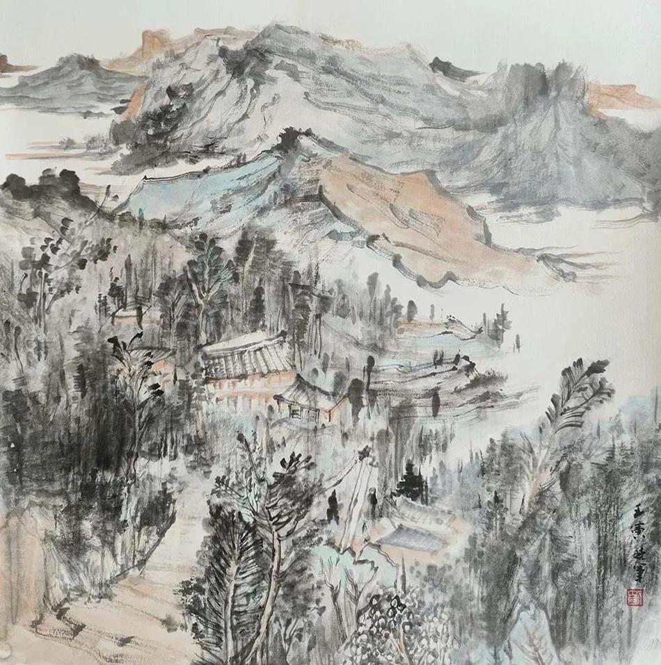 劉曉軍│《云嵐石門村》│45cm×45cm