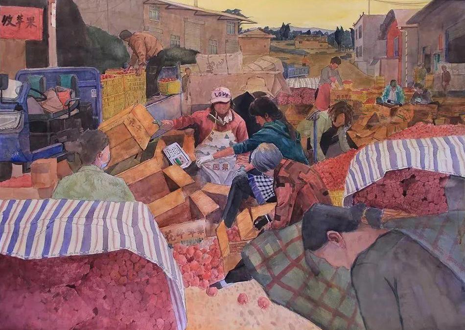 馬彥青│《碩果累累之網(wǎng)銷打包》│76cm×110cm