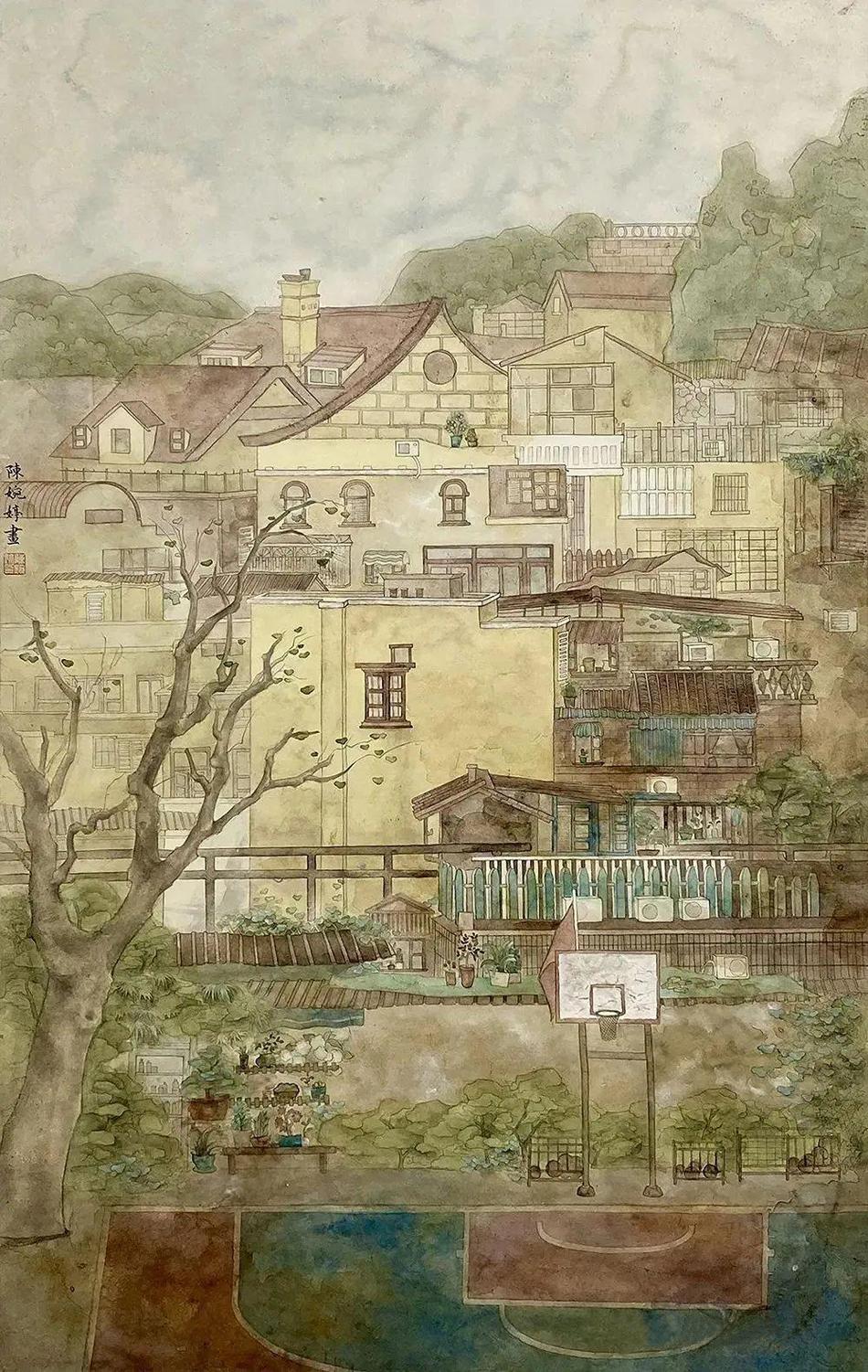 康小明│《新村——無云的午后》│97.5cm×60.8cm