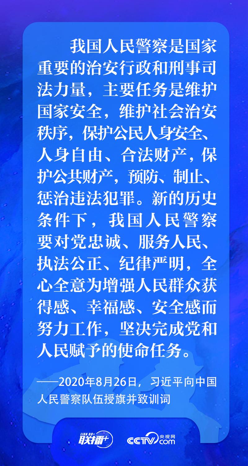 聯(lián)播+“中國人民警察節(jié)”前夕,習近平總書記代表黨中央,向全國人民警察致以節(jié)日祝賀和慰問,希望同志們矢志不渝做黨和人民的忠誠衛(wèi)士,為維護國家安全和社會穩(wěn)定再立新功。