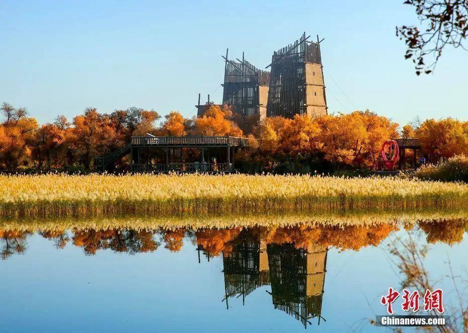 新疆喀什地區(qū)巴楚縣紅海景區(qū)原始胡楊林金黃一片。熱孜萬古 攝