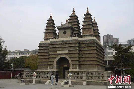 呼和浩特五塔寺呼和浩特五塔寺內(nèi)的金剛座舍利寶塔。中新社記者 劉文華 攝