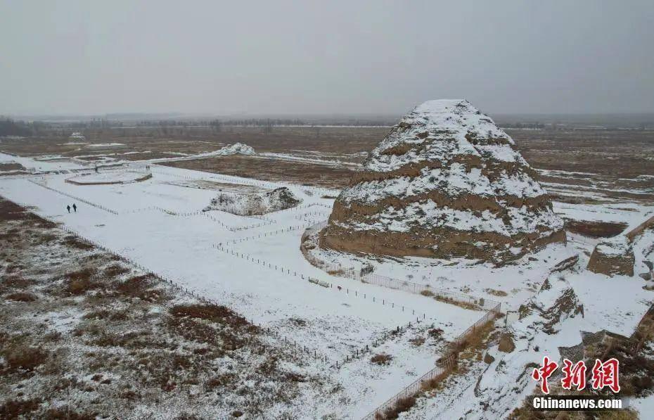 航拍位于寧夏銀川賀蘭山山麓的西夏陵遺址。于晶 攝