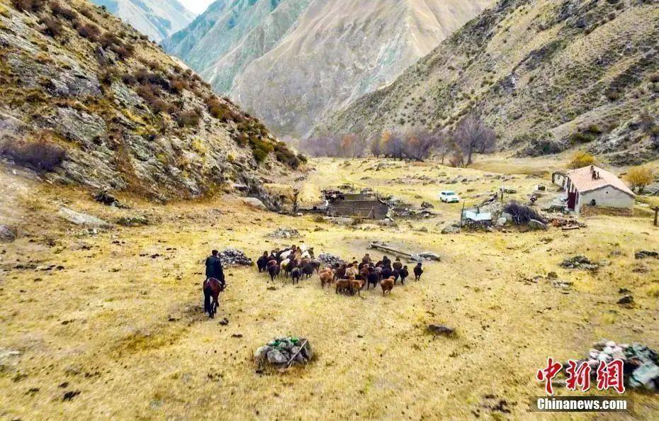 新疆特克斯,牧民趕著牲畜前往冬牧場。巴合提亞爾·熱斯開力德 攝