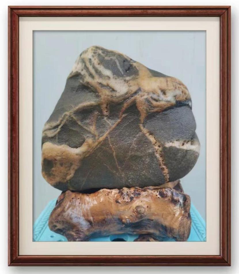 先生喜石,深得石趣。自稱“五百石奴仆”,閑暇時約三五石友,每至深山大溝、渭河灘頭,搜撿奇石,頗得覓石之樂。偶遇意中石,如獲至寶,欣喜若狂,遠(yuǎn)觀近瞅,左顧右盼,又得賞石之樂。辟大屋以供石,靈石滿屋,氣象萬千,或?qū)κx詩,或撫石詠唱,再得題石之樂。于先生,石中有詩、有聯(lián)、有書法、有人生。