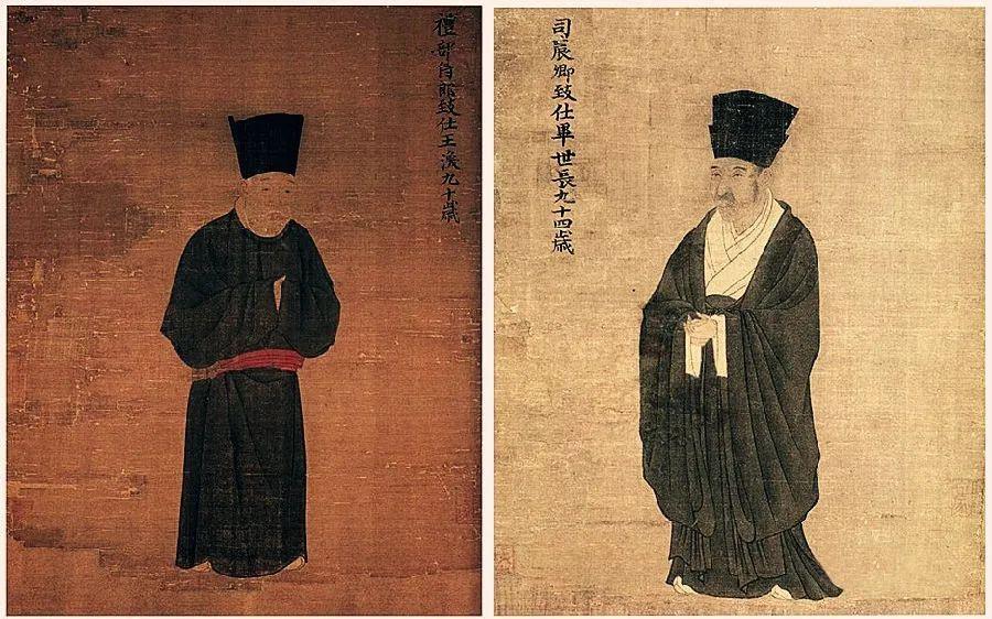 《睢陽(yáng)五老圖》原為手卷,絹本設(shè)色,清代改為冊(cè)頁(yè)。該畫、序及數(shù)十人的跋于民國(guó)時(shí)期被一分為五流出海外,《畢世長(zhǎng)像》藏于紐約大都會(huì)藝術(shù)博物館,《馮平像》和《王渙像》藏于華盛頓弗利爾美術(shù)館,《朱貫像》和《杜衍像》藏于耶魯大學(xué)博物館。剩余50余家題跋,現(xiàn)藏于上海博物館。