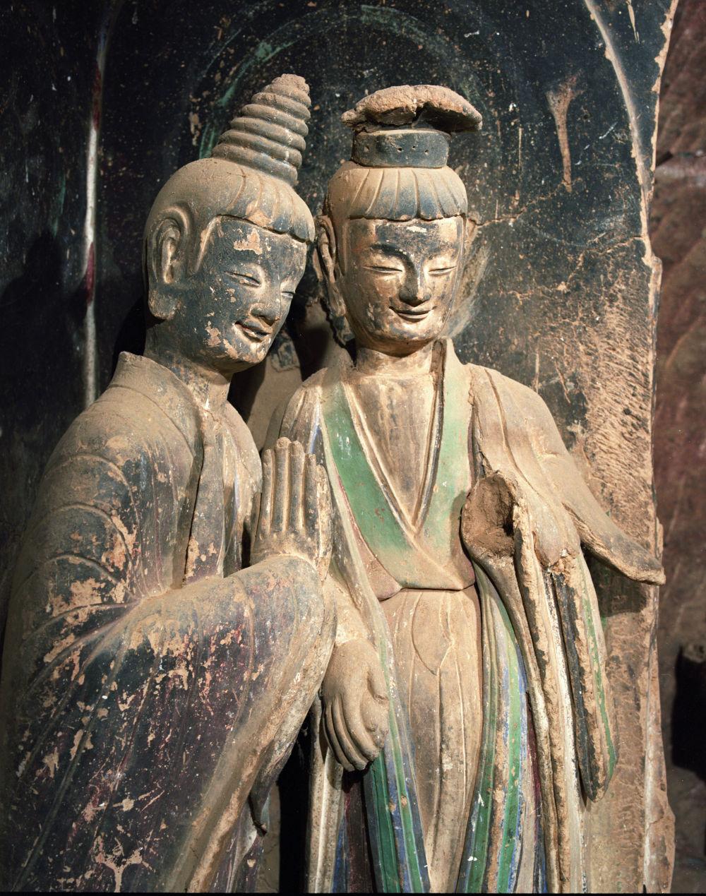 這是麥積山第121窟的菩薩與弟子造像。(麥積山石窟藝術(shù)研究所供圖)